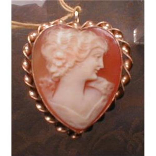 </font></strong>Beautiful heart-shaped cameo in 10k gold bezel with twisted