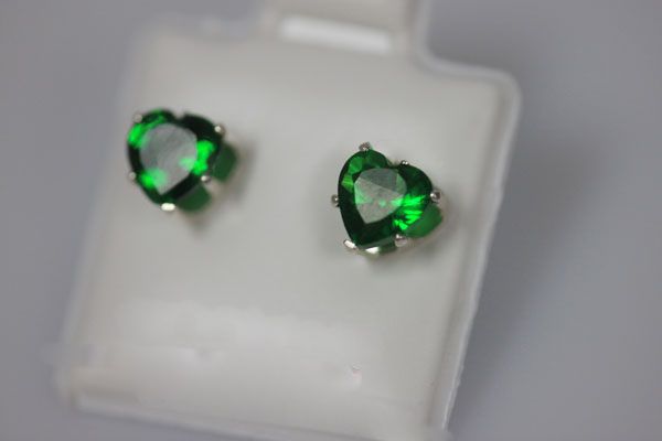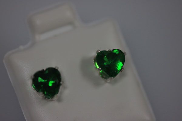 HEART EMERALD CZ STUD EARRINGS .925 STERLING SILVER **|**|** HEART EMERALD CZ STUD EARRINGS .925 STERLING SILVER ; MSRP: $0