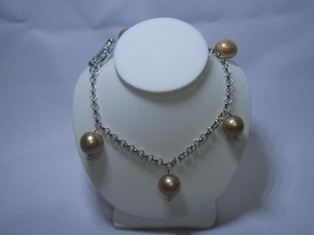 HEART-KEYLOCK CHAMPAGNE PEARL CHARM BRACELET; AUTHENTIC **|**|** HEART-KEYLOCK CHAMPAGNE PEARL CHARM BRACELET; AUTHENTIC PHILIPPINE PEARL; METAL - SILVER; SIZE - 8INCH ; MSRP: $300