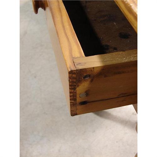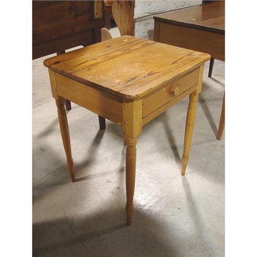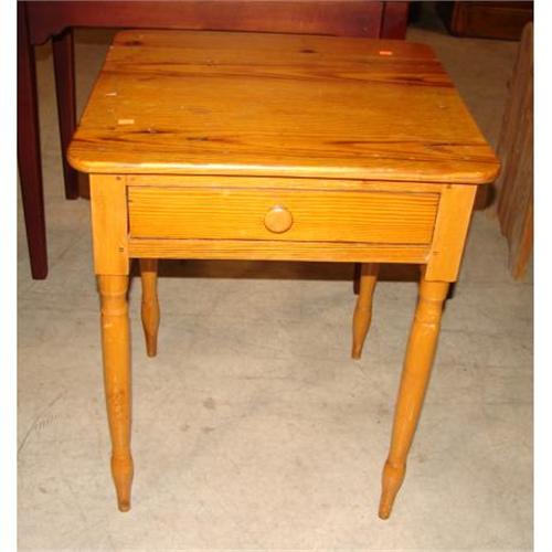HEART PINE SHERATON SINGLE DRAWER WORK TABLE. Pegged construction with single board top with rounded corners. 29” H, 23” W, 22” D