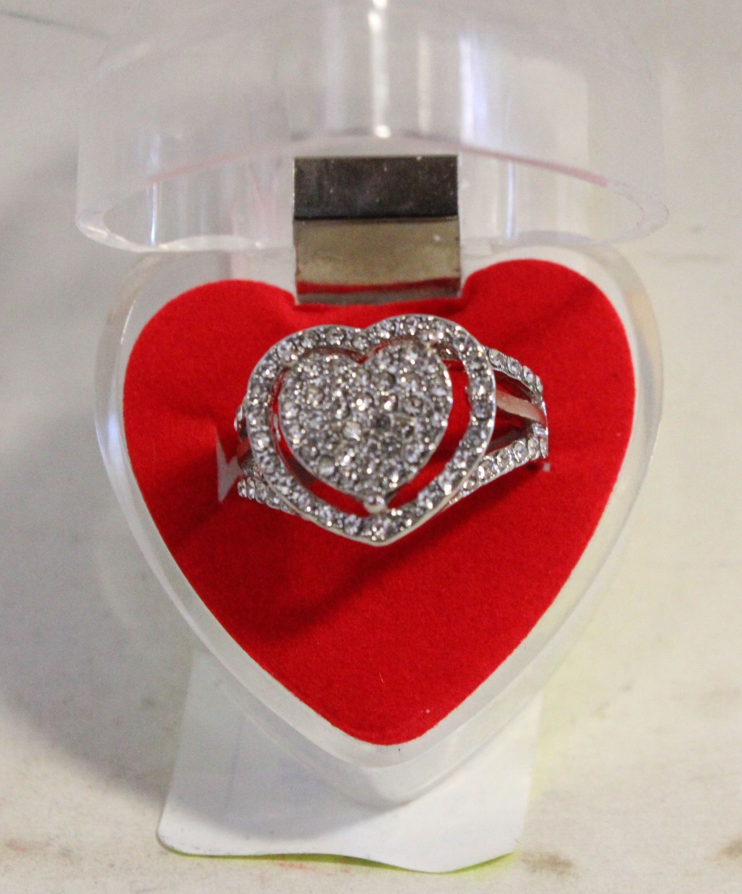 HEART RING BAND WITH CRYSTALS SIZE 8