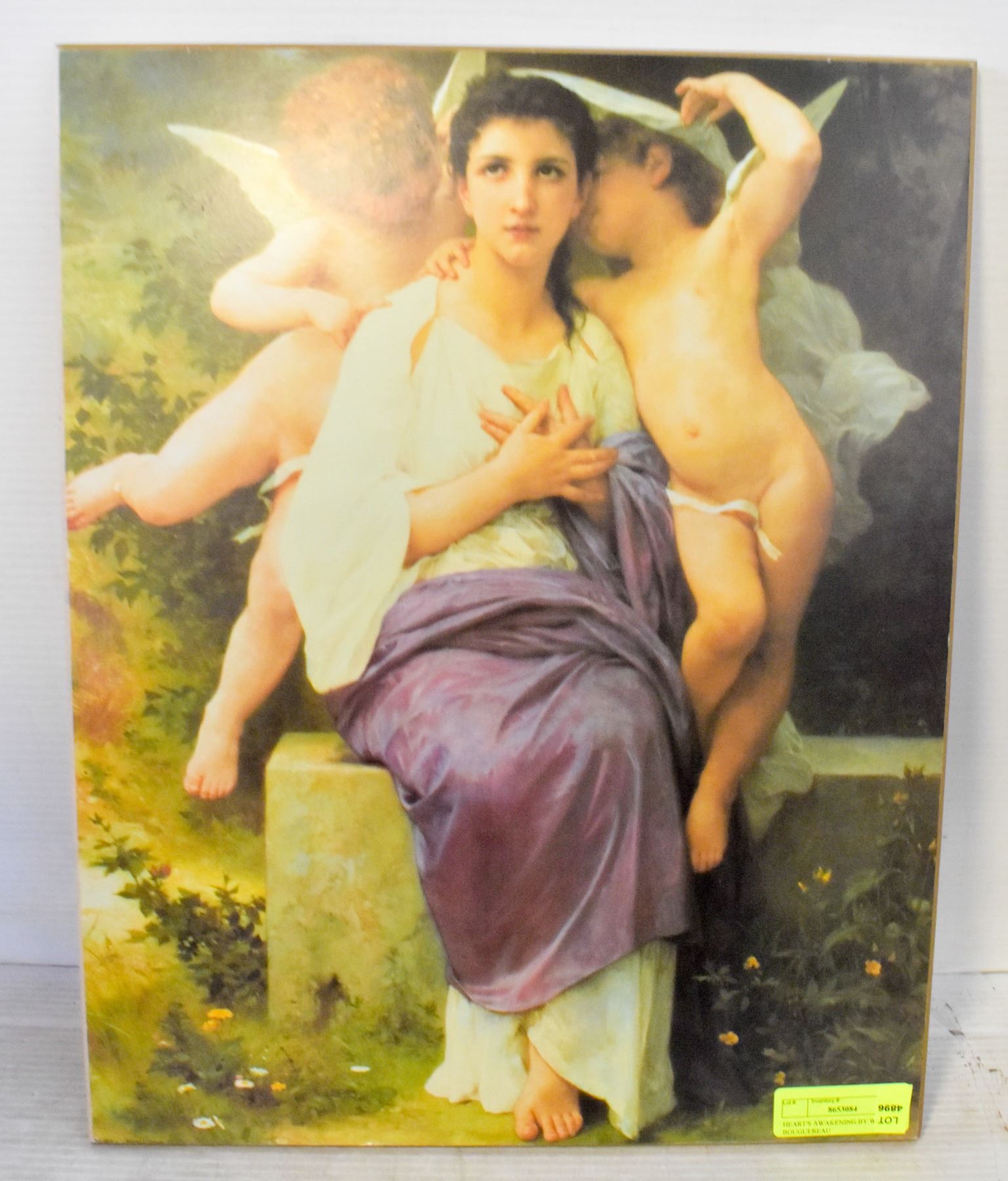 A 16 X 20 , INCH PLAQUE MOUNTED IMAGE WITH CUT OUT HANGING STRIP ON BACK