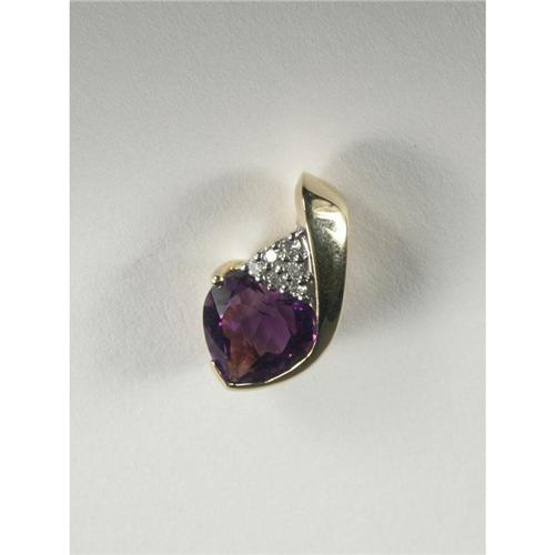 PENDANT: Stylish 14k yellow gold pendant set with a heart shaped amethyst and six round cut diamonds. The strong purple amethyst measures approximately 2.13 cts and is transparent. The diamonds measure approximately 0.10 ctw, have VS1 to SI1 clarity and G to H color. Appraisal included.