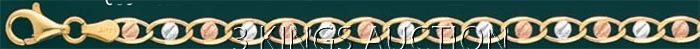 HEART VALENTINO 100 4.4mm 7.5in. 4.6 grs 14kt 3tone Gol **|**|** HEART VALENTINO 100 4.4mm 7.5in. 4.6 grs 14kt 3tone Gold ; MSRP: $400