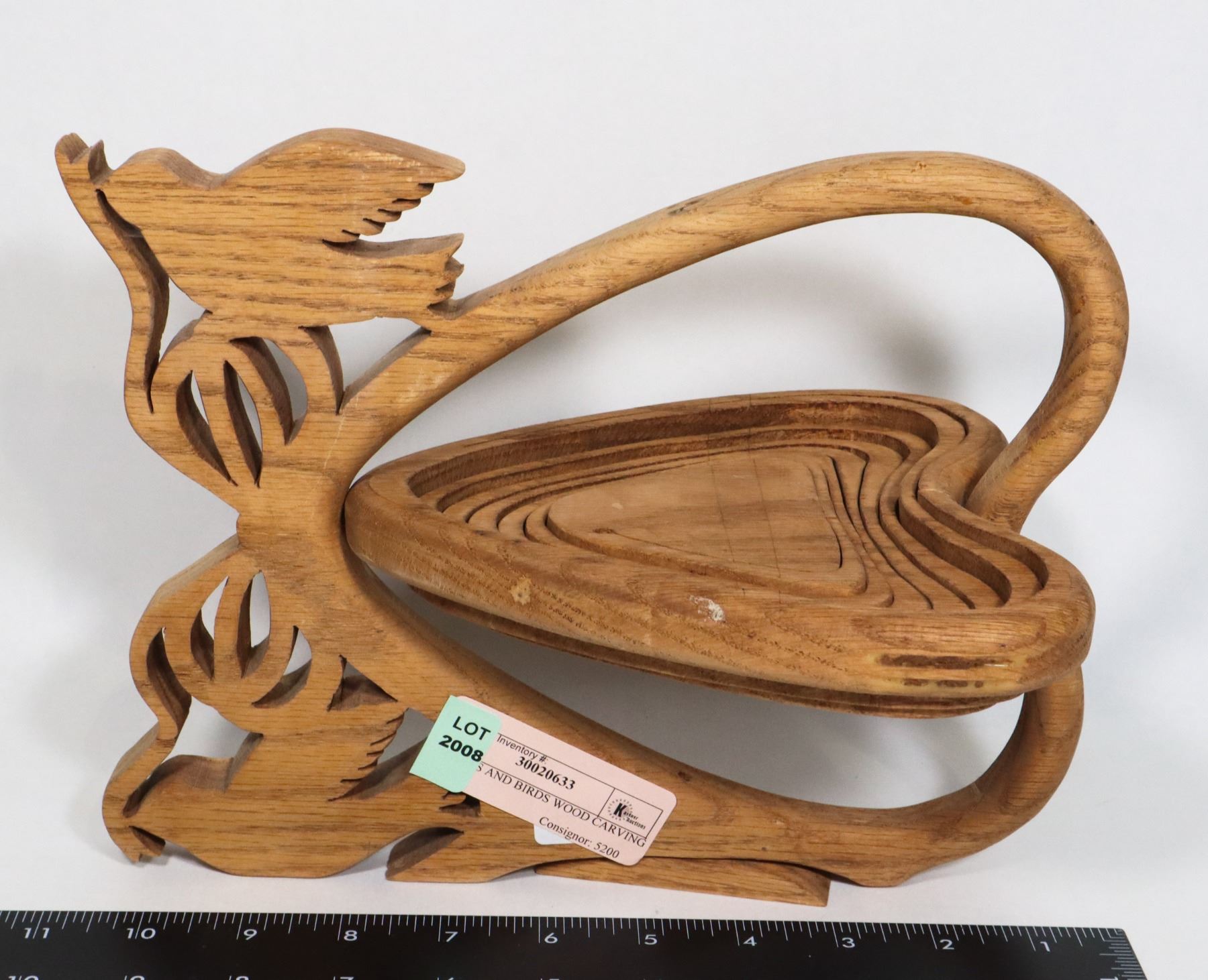 HEARTS AND BIRDS WOOD CARVING