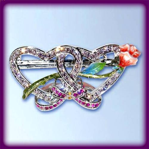 TWO HEARTS ARE EMBELLISHED WITH SWAROVSKI CRYSTALS AND A COLORFULLY ENAMELED ROSE, TO CREATE THIS EXQUISITE BUSINESS CARD HOLDER. PERFECT FOR HER DESK TOP. D-1425