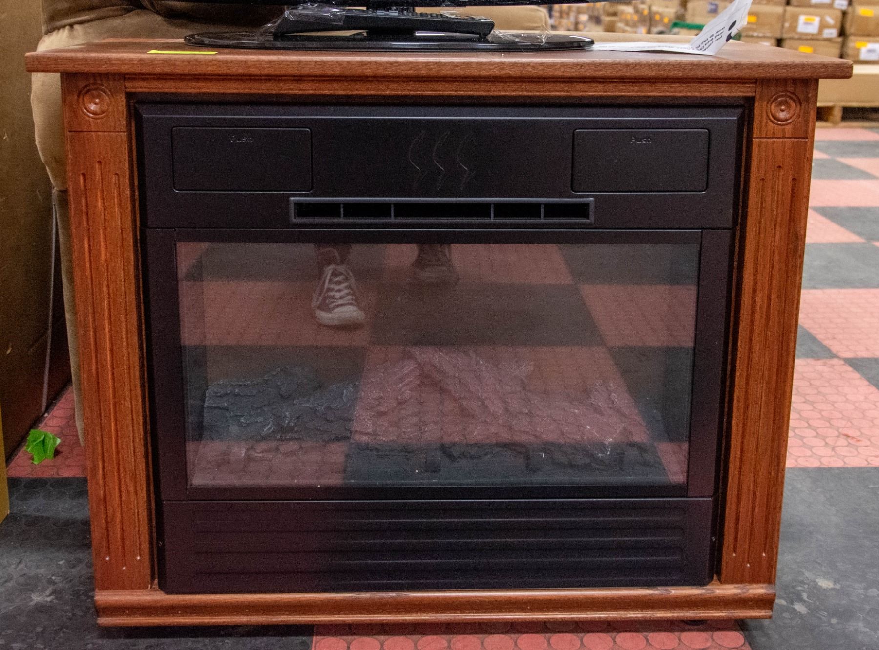 DARK OAK ELECTRIC FIREPLACE/HEATER WITH GENUINE AMISH MANTLE ADJUSTABLE FLAME/FAN/HEAT SETTINGS, PORTABLE: ROLLING AND HAS 2 SIDE HANDLES FOR CARRYING, THROWS GREAT HEAT (32"L X 11.5"W X 25"H) - TESTED **ALL ITEMS MUST BE REMOVED BY 5PM SATURDAY, JANUARY 28TH 2023. **ALL REMAINING ITEMS WILL BE SUBJECT TO A $6.00 PER DAY STORAGE CHARGE. ANY ITEMS REMAINING AFTER MONDAY, FEBRUARY 13TH, 2023 WILL BE CONSIDERED FORFEITED. NO REFUNDS WILL BE ISSUED FOR FORFEITED ITEMS. TO SCHEDULE A PICK UP APPOINTMENT CLICK HERE