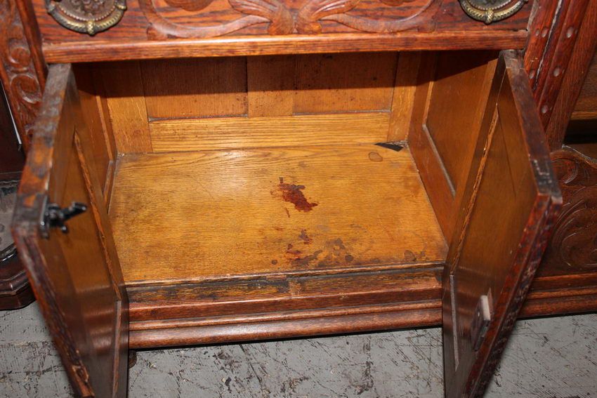 HEAVELY CARVED OAK SIDE BY SIDE IN ORIGINAL EXCELLENT CONDITION