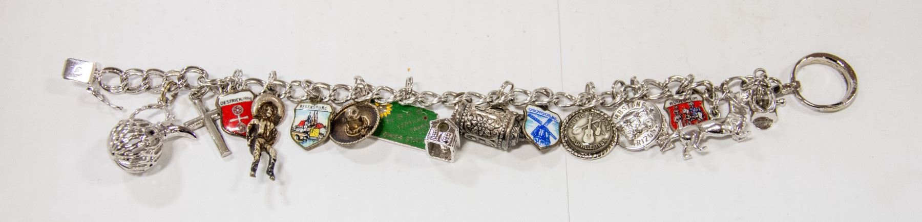 HEAVY .925 SILVER BRACELET WITH 17 SILVER CHARMS