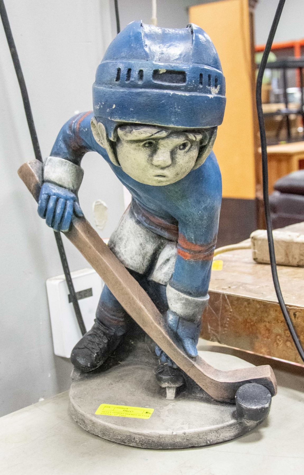 HEAVY CEMENT HOCKEY PLAYER STATUE - 17" TALL