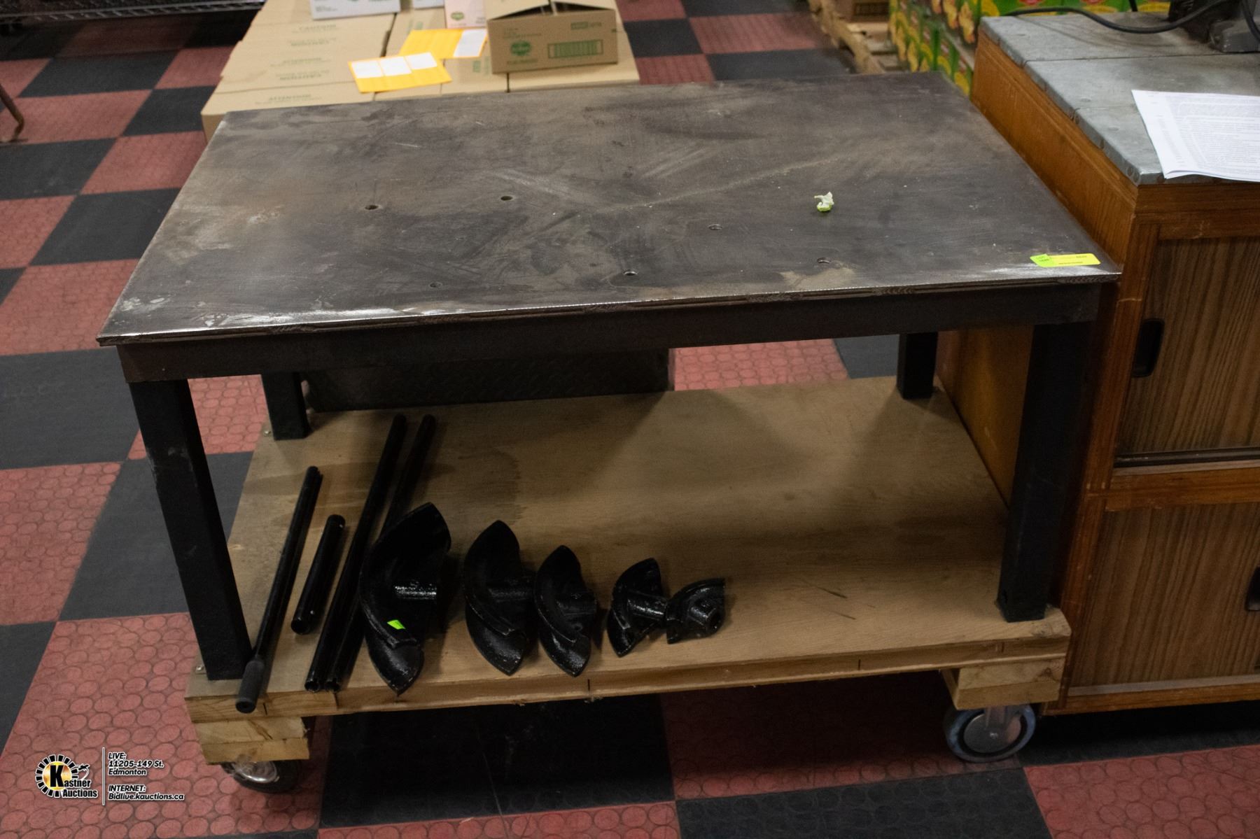HEAVY DUTY METAL WORK TABLE ON WHEELS