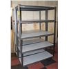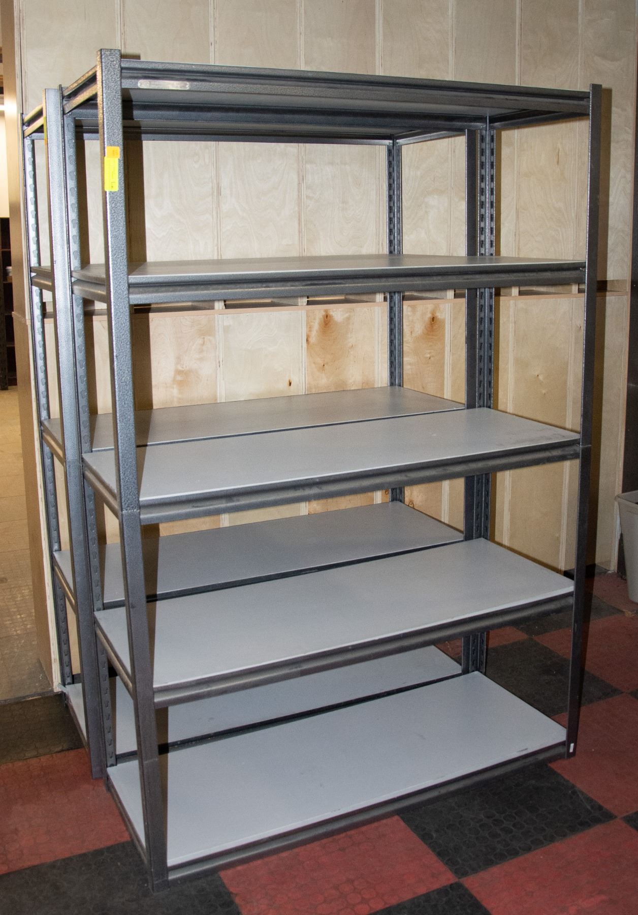 SHELVING UNIT WITH 5 ADJUSTABLE SHELVES WITH WOOD PANEL INSERTS - 2-TONE GREY AND BLACK (48.5"L X 19"W X 72"H)**ALL ITEMS MUST BE REMOVED BY 5PM MONDAY, OCTOBER 17TH, 2022. ALL REMAINING ITEMS WILL BE SUBJECT TO A $6.00 PER DAY STORAGE CHARGE. ANY ITEMS REMAINING AFTER MONDAY, OCTOBER 29, 2022 WILL BE CONSIDERED FORFEITED. NO REFUNDS WILL BE ISSUED FOR FORFEITED ITEMS. TO SCHEDULE A PICK UP APPOINTMENT CLICK HERE