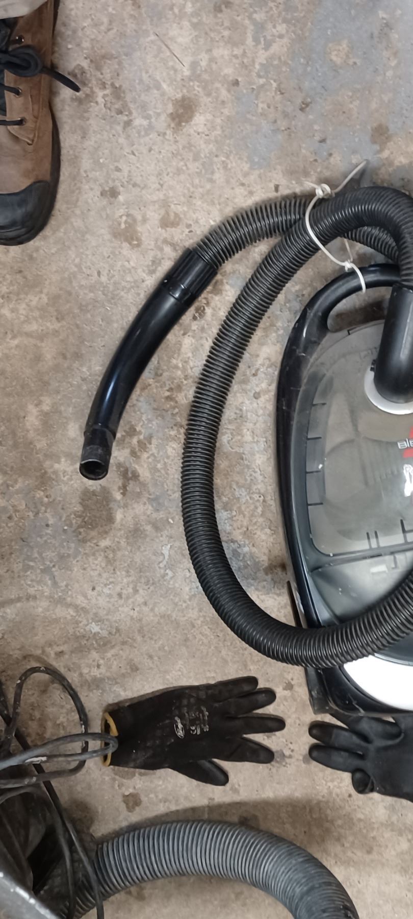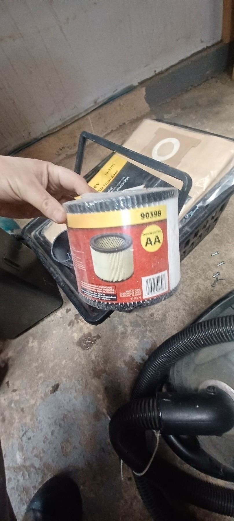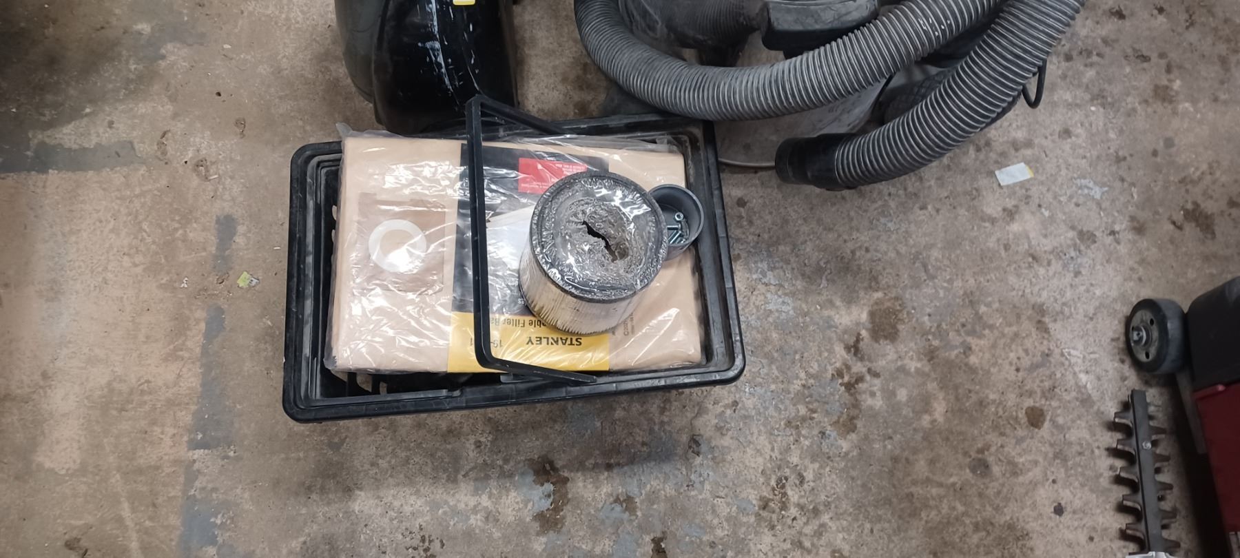 HEAVY DUTY STAINLESS STEEL SHOP VAC (NEEDS REPAIR) AND SMALLER VACUUM CLEANER, TOTE AND VACUUM BAGS