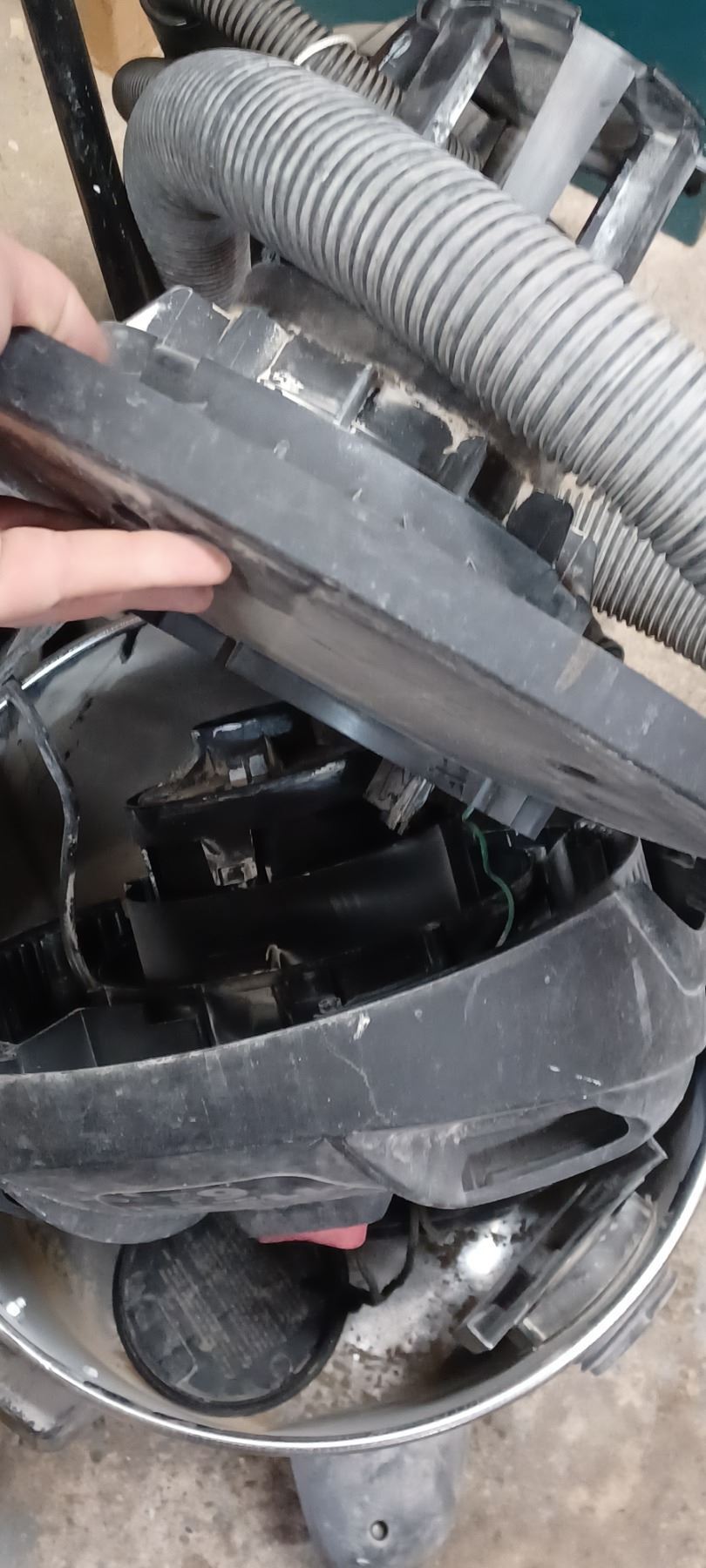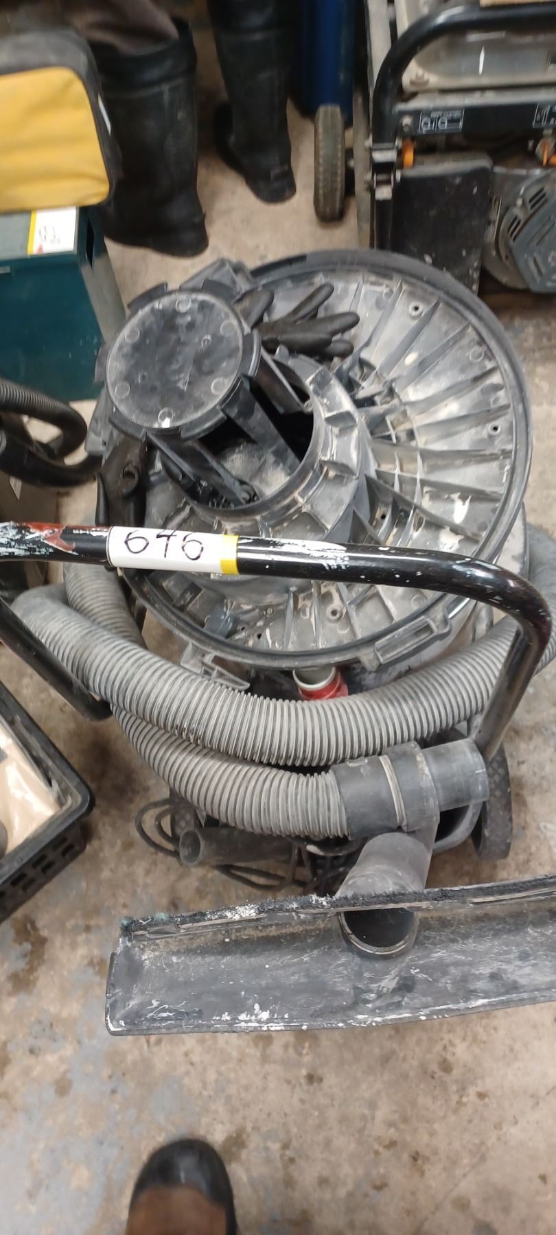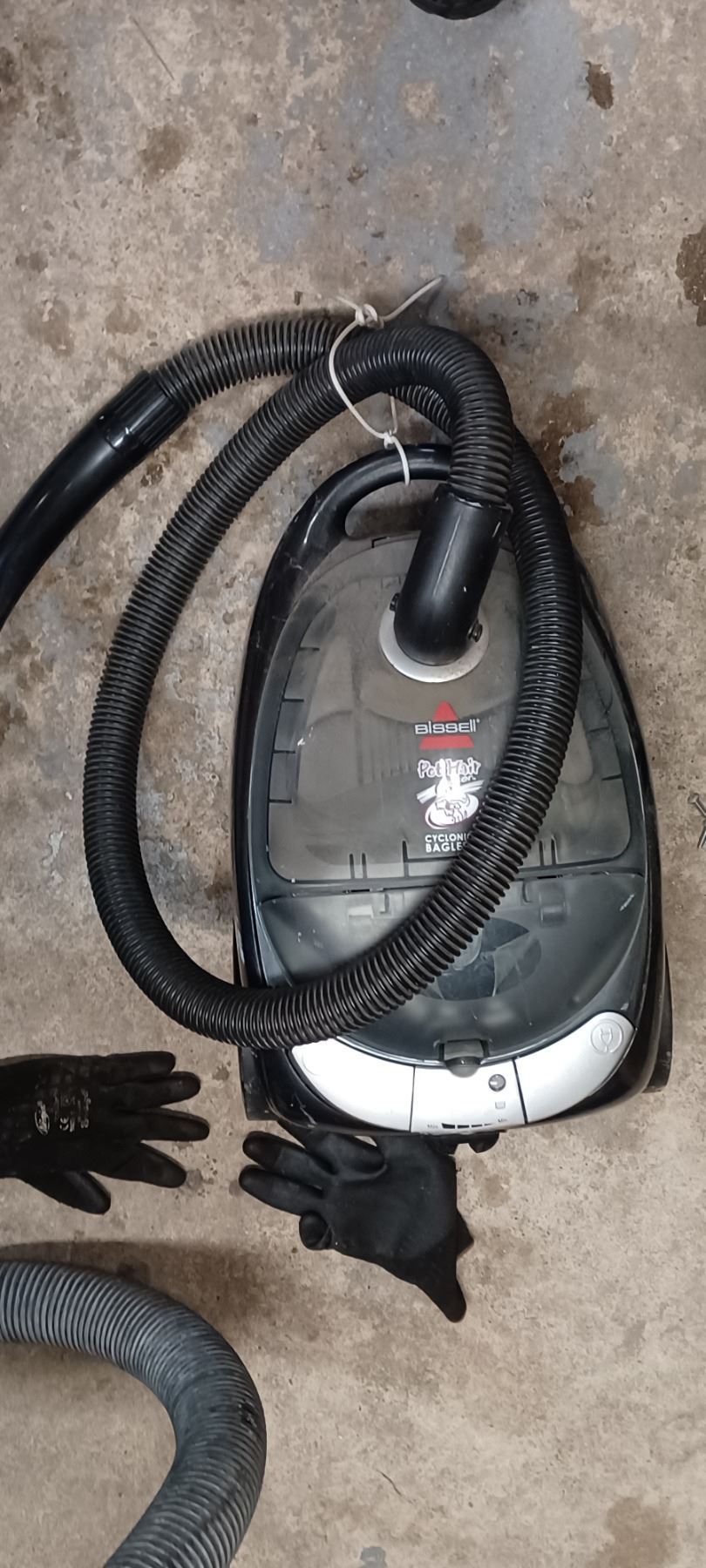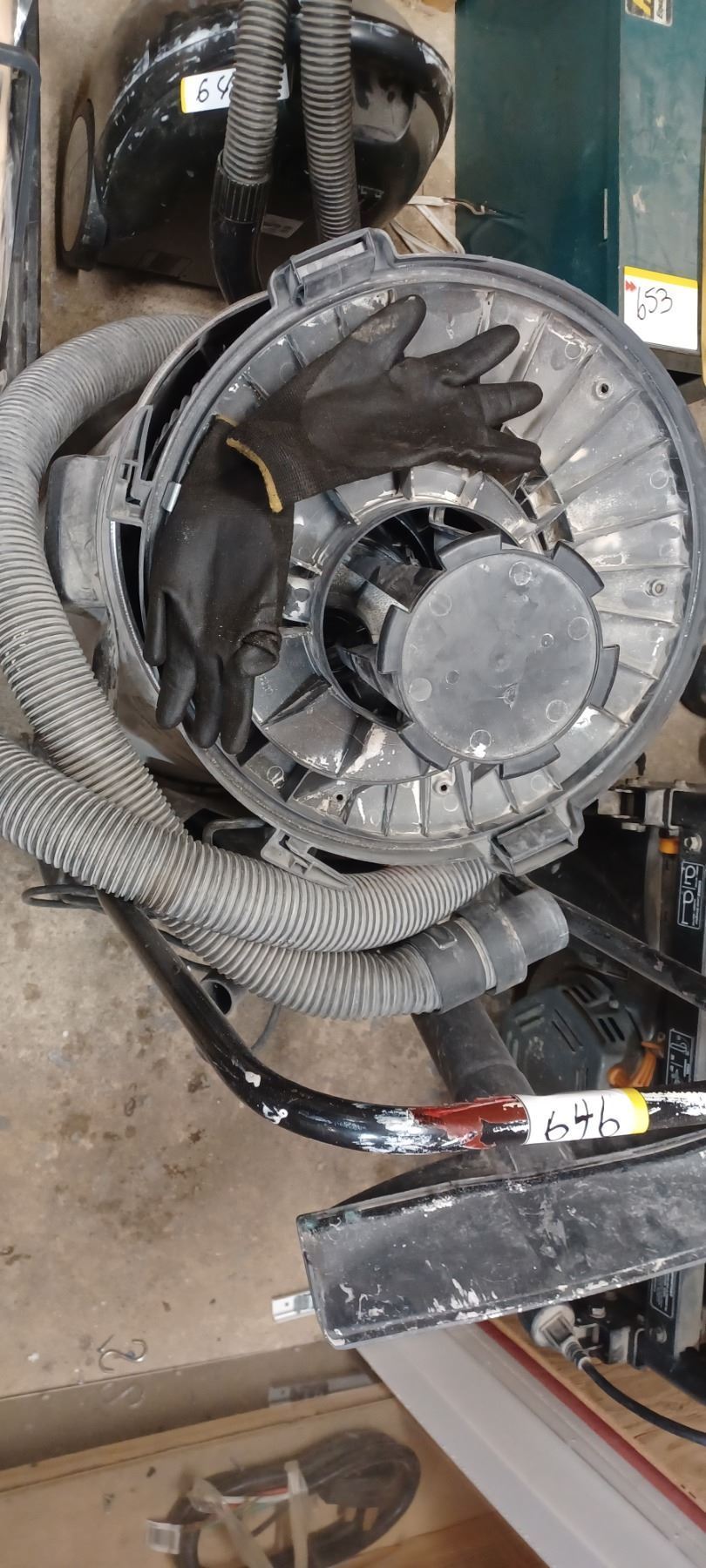 HEAVY DUTY STAINLESS STEEL SHOP VAC (NEEDS REPAIR) AND SMALLER VACUUM CLEANER, TOTE AND VACUUM BAGS