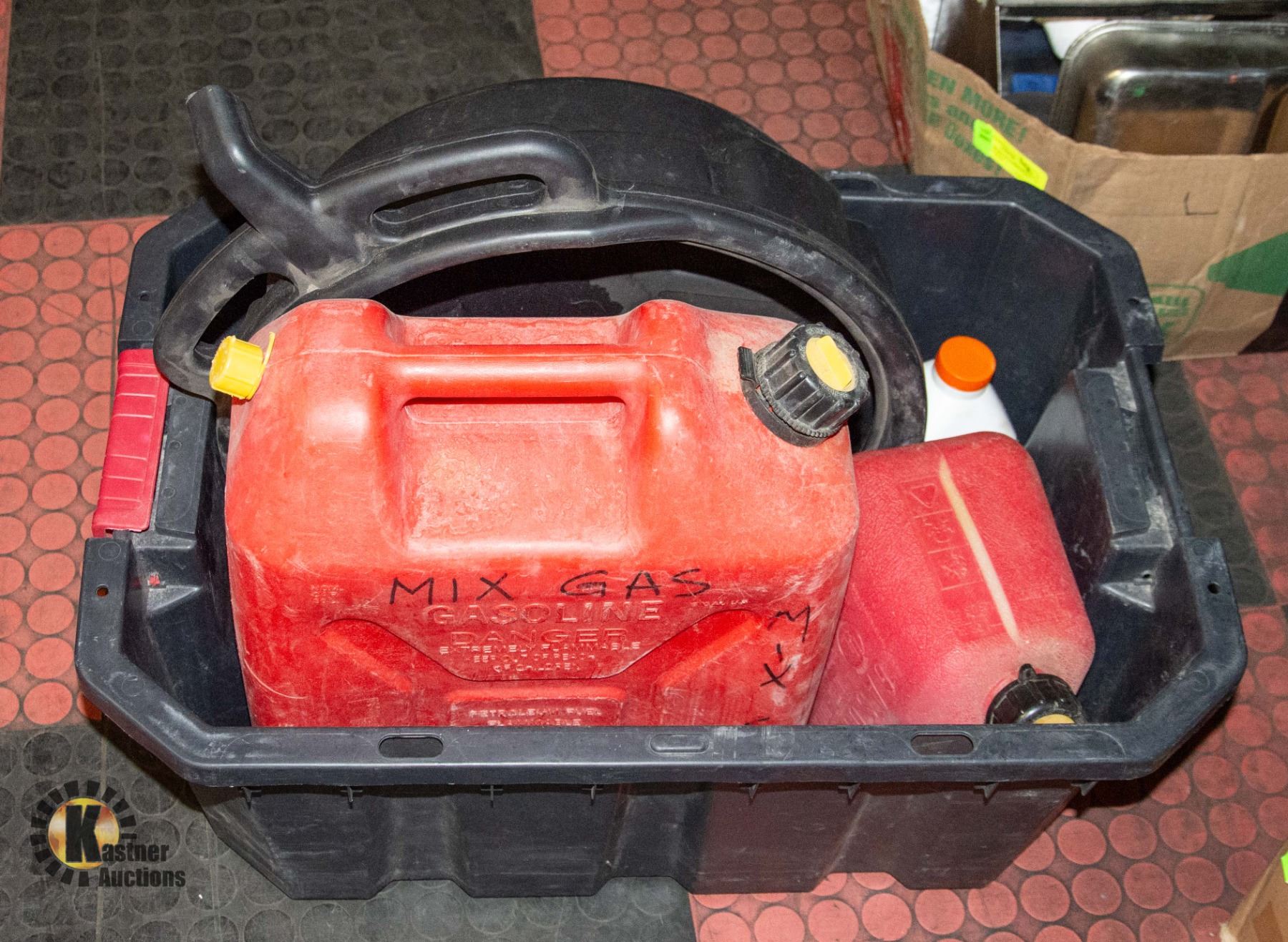 HEAVY DUTY TOTE WITH 5 GALLON TALL GAS CAN,