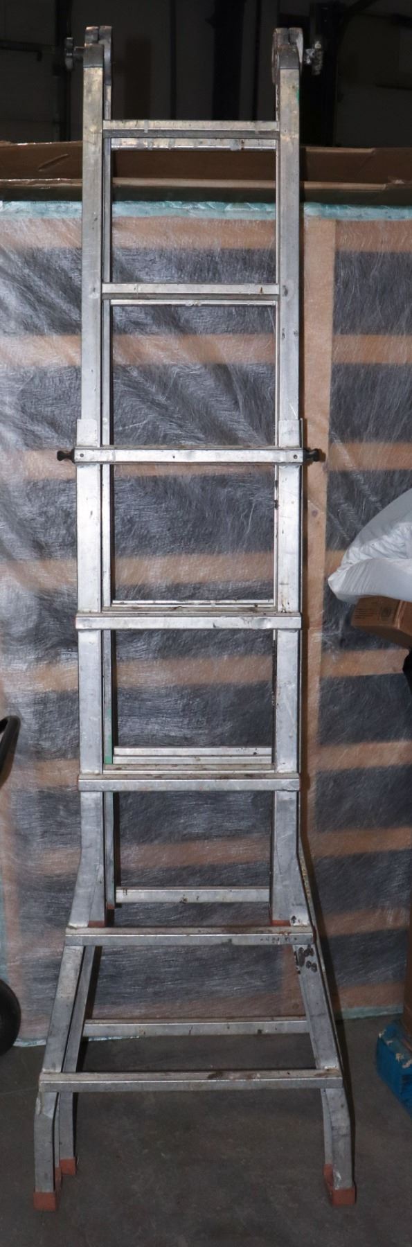 UNABLE TO SEE WEIGHT RESTRICTIONS/ BRAND NAME. AS SITTING MEASURES 93" TALL SO LADDER IS AT LEAST 180" OVERALL HEIGHT