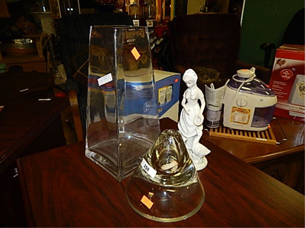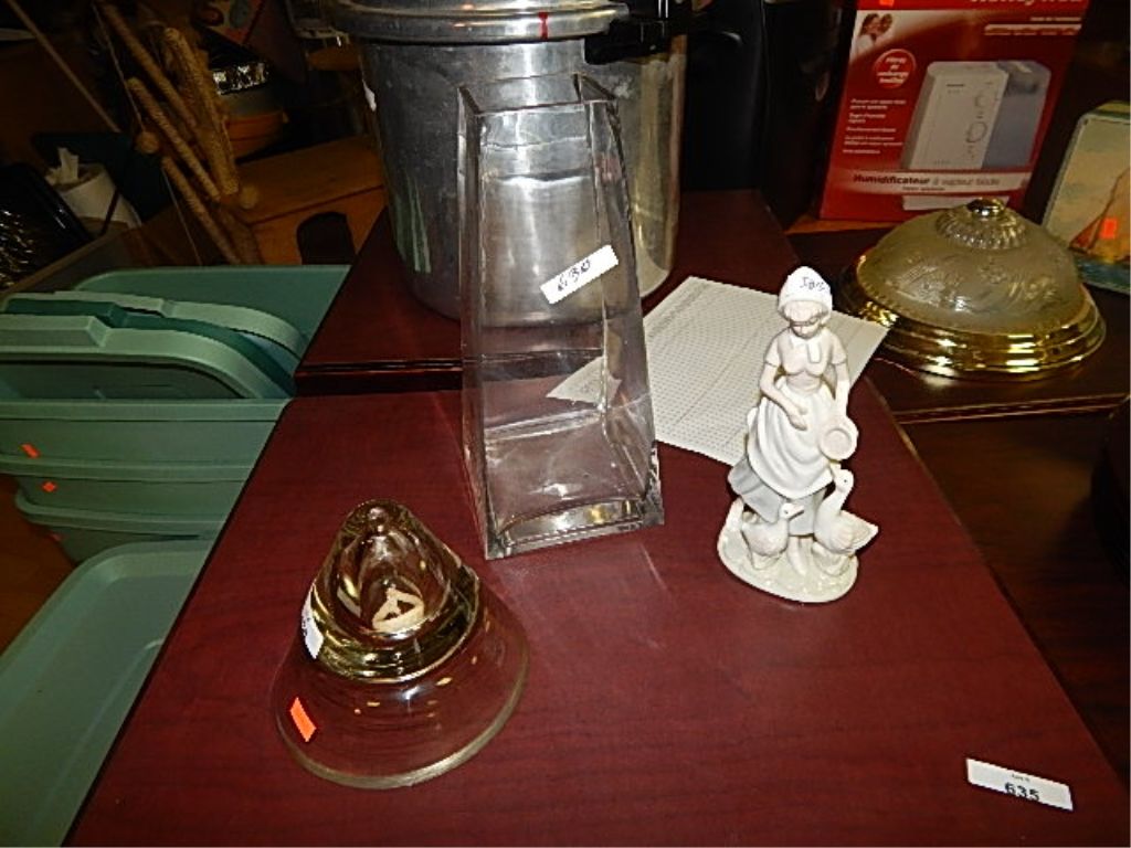 HEAVY GLASS OIL CANDLE WITH CLEAR GLASS VASE AND LADY ORNAMENT