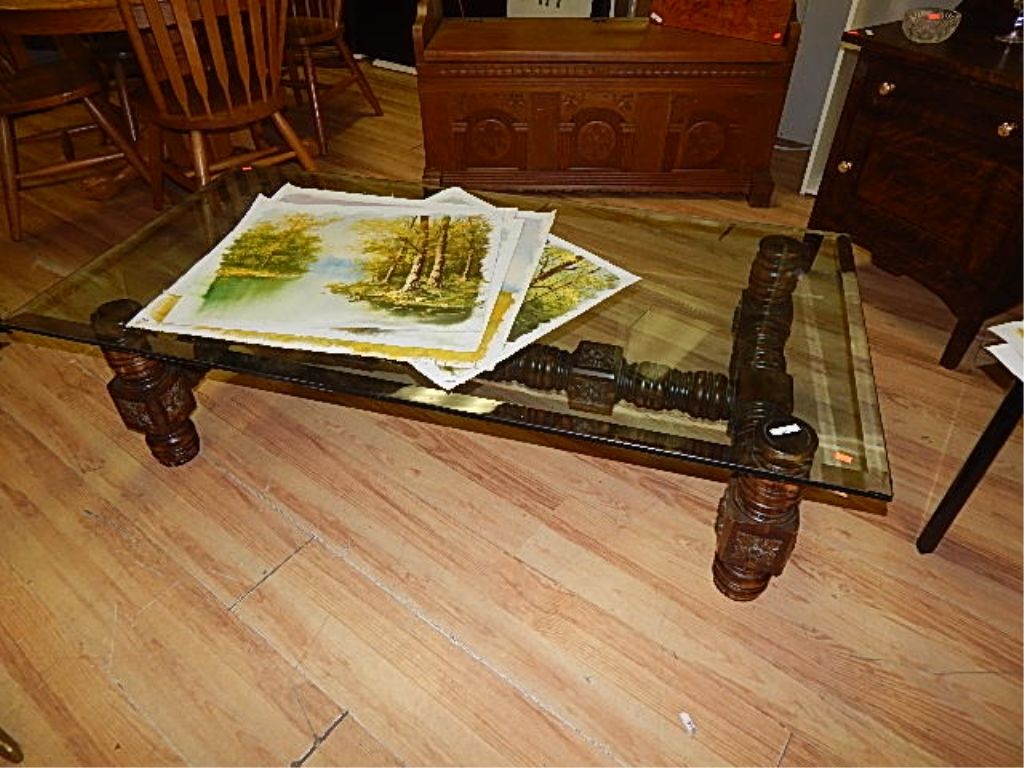 HEAVY GLASS TOP GOTHIC STYLE COFFEE TABLE