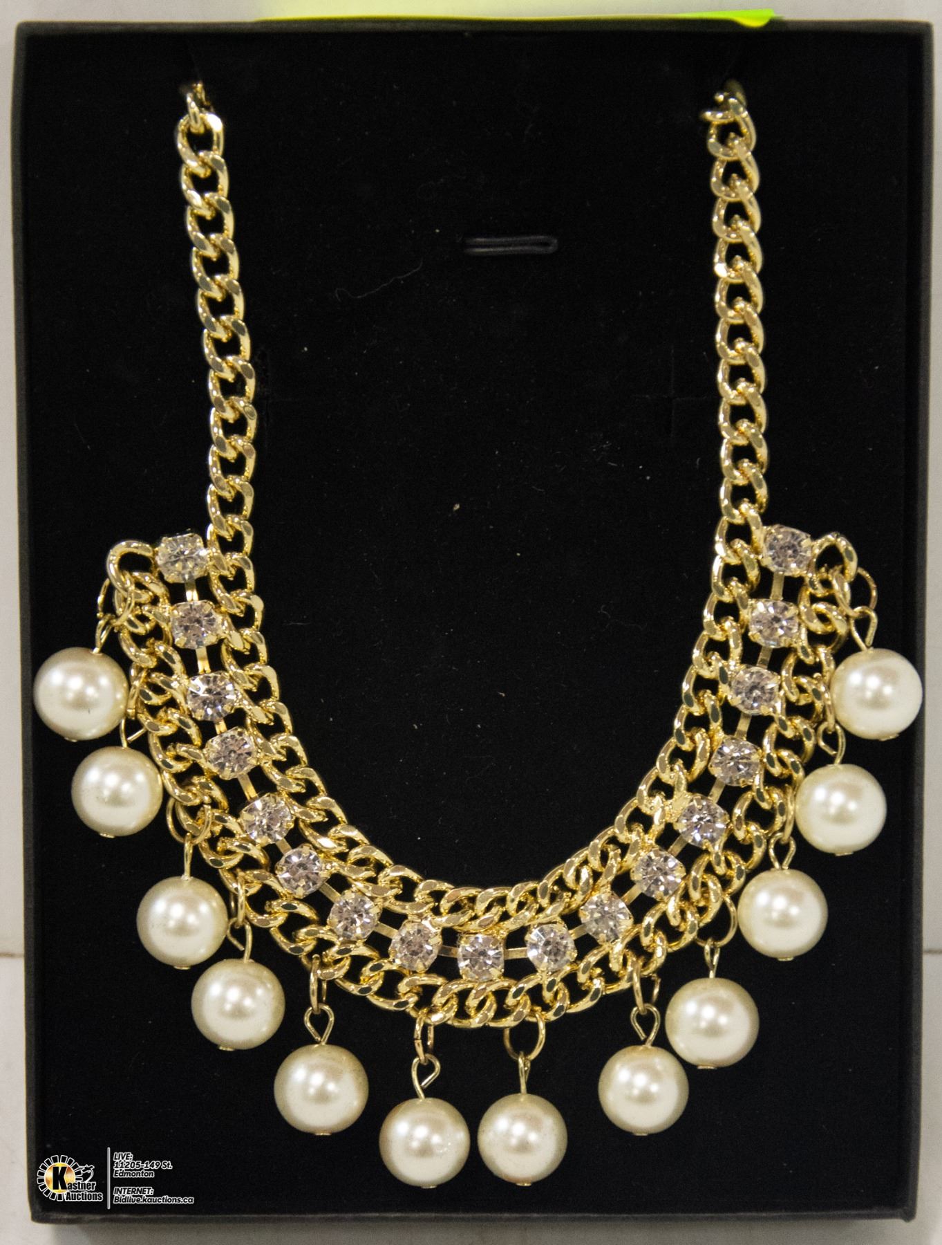 HEAVY GOLD TONE PEARL AND CUBIC ZIRCONIA NECKLACE