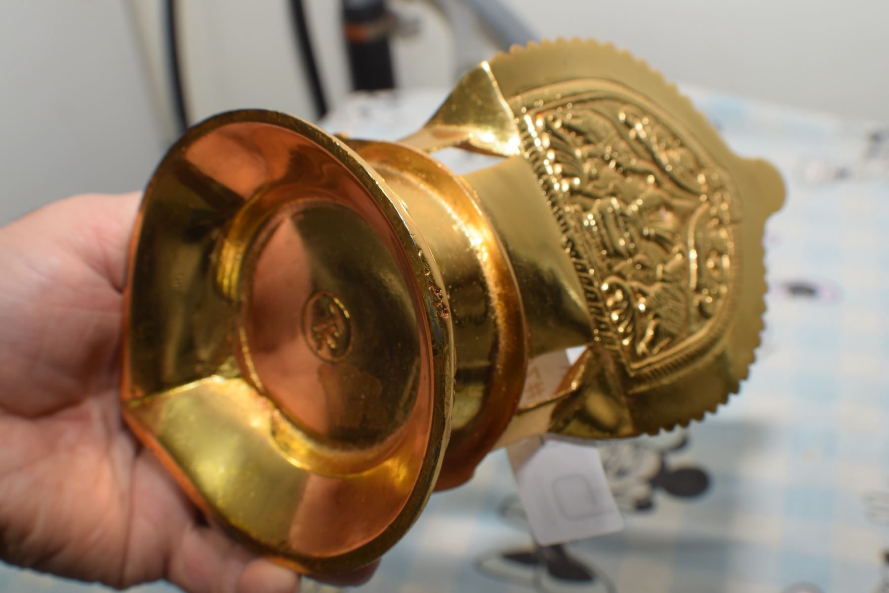 HEAVY ORNATE BRASS HINDU ASHTRAY