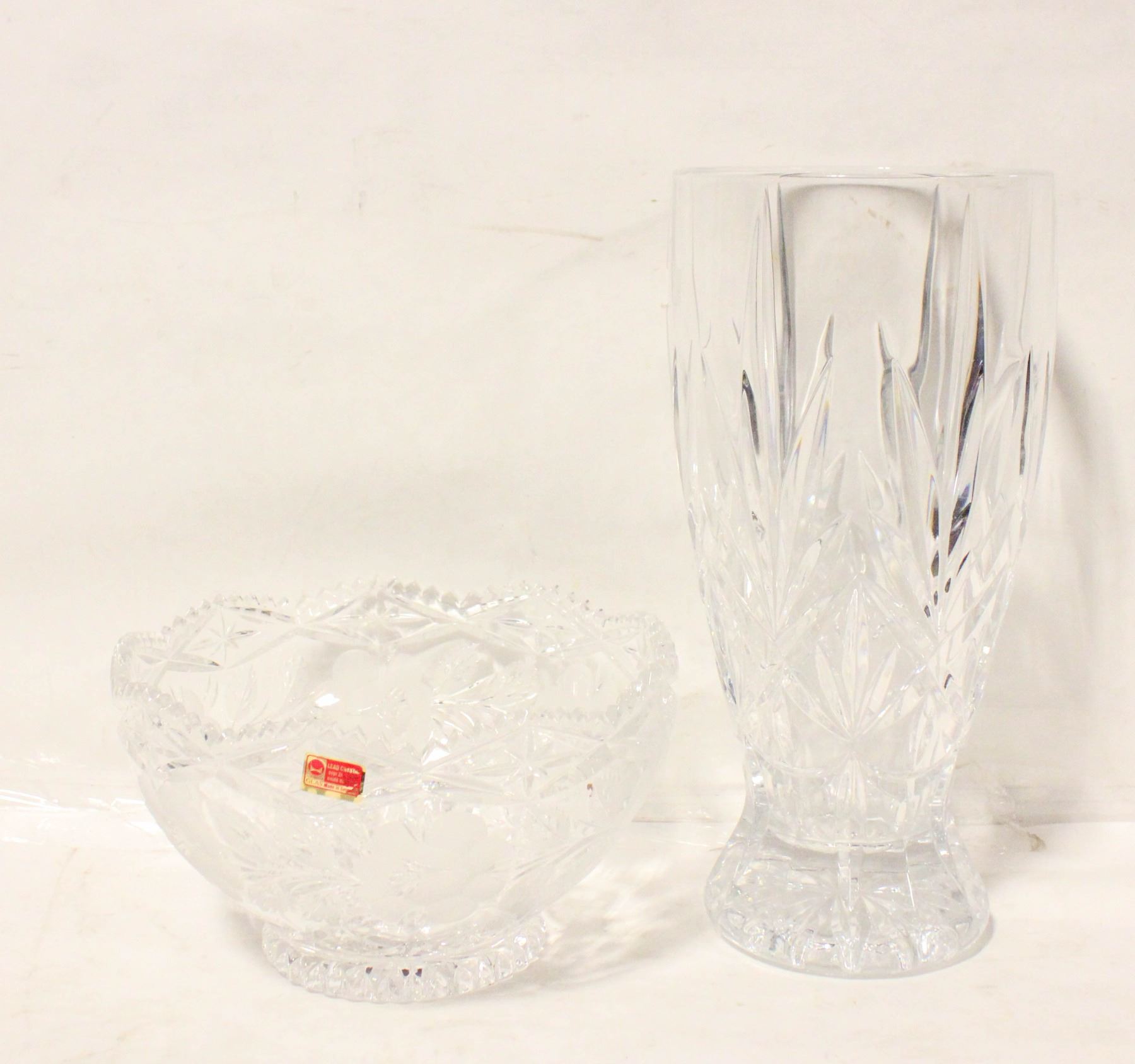 HEAVY PINWHEEL CRYSTAL VASE SOLD WITH LEAD CRYSTAL