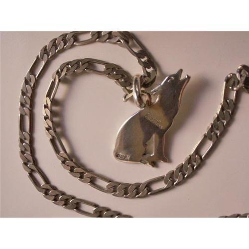 UNISEX. A dramatic piece that would be wonderful for man in your life for birthday or Holiday gift. This is a unique and dramatic unisex sterling silver Coyote Pendant with heavy chain. Weight: 66 grams. Signed: SBM. Hallmarked Coyote Classics - Sterling. The vintage Figaro style sterling silver chain is 1/4" thick wide (8.4mm).