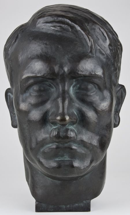 A superb bronze bust of Adolf Hitler, one of the most recognized Hitler bronzes, believed to have been given by Nazi Minister of Propaganda Joseph Goebbels to an attractive film actress who was accused of having acted as his spy in revealing subversives in the film industry. The 18" tall massive hollow bronze bust shows the dictator bearing a stern expression, very true to life. The rectangular 4" x 4 3/4" base bears three threaded holes which were once used to secure the bust to a larger base. The bronze bears a fine patina, with foundry mark "WMF GEISLINGEN-STG " (Wurttmburgische Metallwarenfabrik at Geislingen) on the bottom left of the base. The bust is also signed by the artist: "H. M. Ley" on the left side of the neck. HEDWIG MARIA LEY (188-1974) was a talented sculptress who established her practice in Munich in 1930. In 1933 Joseph Goebbels commissioned her to create this bust, which immediately became vastly popular throughout Germany. According to our consignor, this bust was owned by Goebbels who no doubt had several at his disposal to be offered as gifts. It was given by him to German film actress Kate Dyckhoff (d. 1998). The attractive young actress began her career in Germany in the Forties with the 1941 film "Illusion" (directed by Veit Harlan, who also directed "Jud Suss", 1940), and had her breakthrough with the 1943 film "Akrobat scho-o-on!". 1944 saw two particularly successful films for Dyckhoff, particularly "Familie Buchholz". We know that Goebbels himself attended the filming of that movie. There also is no disputing the fact that Goebbels was quite a lothario, carrying on affairs throughout adulthood, including actress Lida Baarova, and earning him the nickname "the ram". After the war, Dyckhoff married an Englishman and took the name "Katharina Williams". She returned to Germany in 1950 for "de-nazification" but faced questioning for having denounced an anti-Nazi judge and having been a "confidante" of Joseph Goebbels. The University of Hamburg today maintains much correspondence from German journalist and writer Axel Eggebrecht (1899-1981) condemning Dyckhoff as a (film industry) spy for Goebbels and a pro-Nazi subversive. He was in a position to know: in 1933 he was imprisoned for several months at the Hainewalde concentration camp, and after his release he used pseudonyms to eke out a living in the film industry as a screenwriter, assistant, and critic. Dyckhoff moved to Rome and in 1965 and gave the bust "for services rendered" to a close family friend, a German aristocrat who is our consignor. A letter of provenance, 1p. 4to., Rome, Feb. 18, 1986 is written on "Katharina Williams" Rome letterhead, in German. In full: "CERTIFICATION [Consignor's name] confirms herewith to Katharina Williams (nee Dyckhoff) the receipt of a Hitler bust from the artist Maria Ley, from 1933. The bust was given to Mrs. Williams at the end of 1944 by Joseph Goebbels in Berlin as a present. [Consignor signature and typed name]". Also present are two printed photos of Dyckhoff with our consignor in Munich, 1984. Excellent condition, spotless and very fine.
