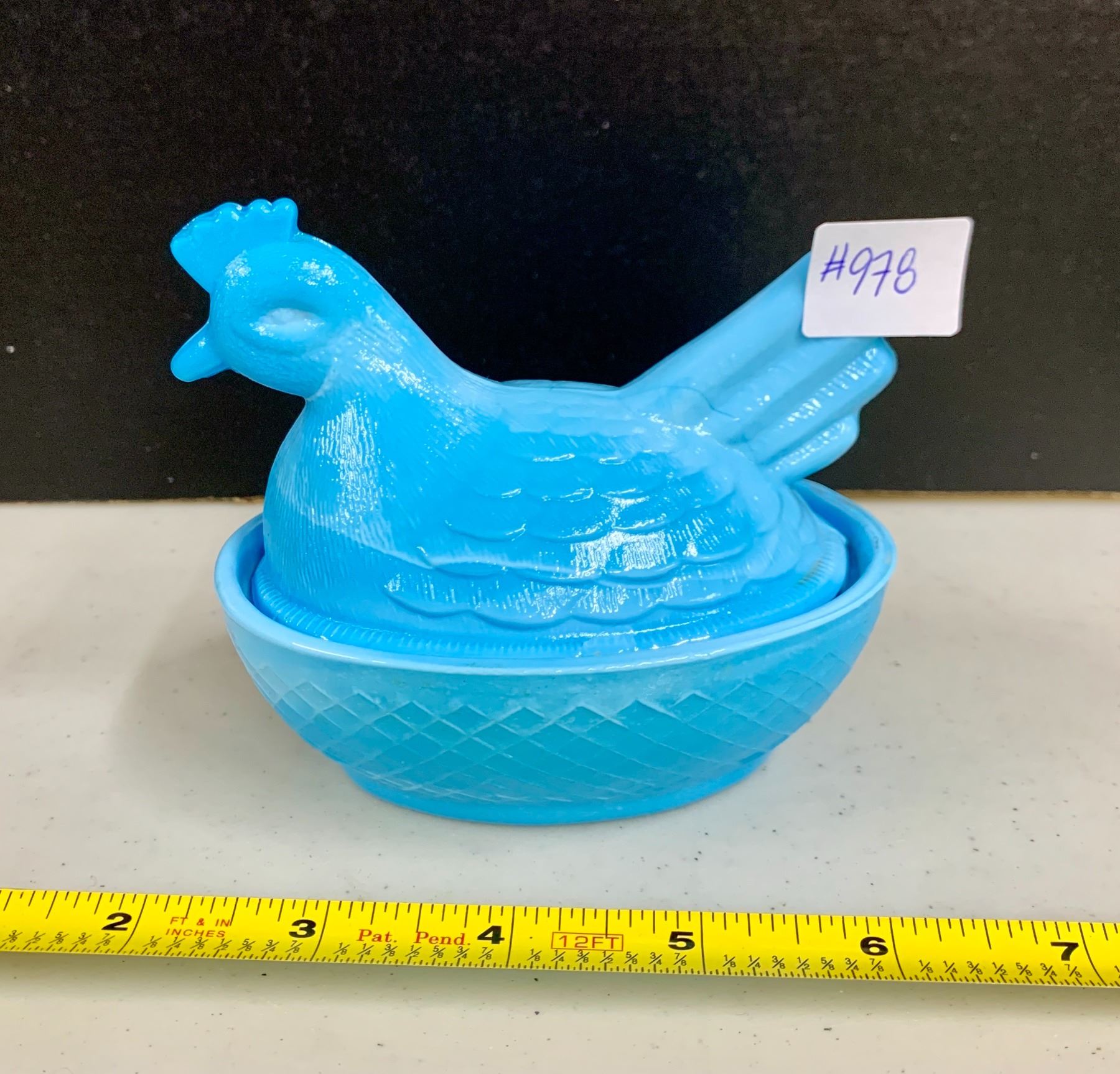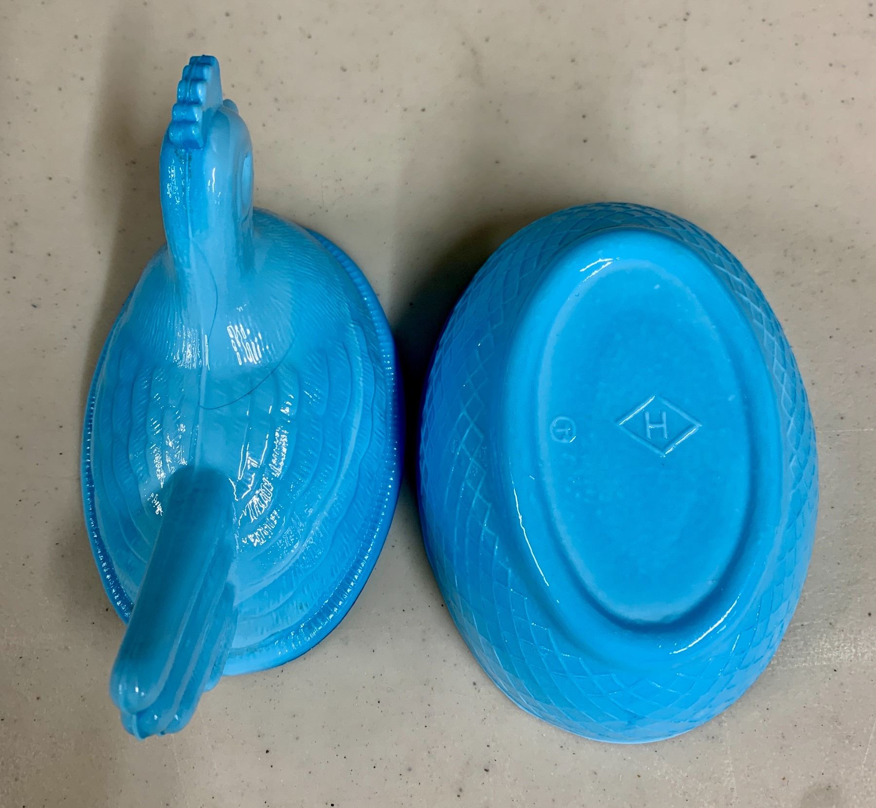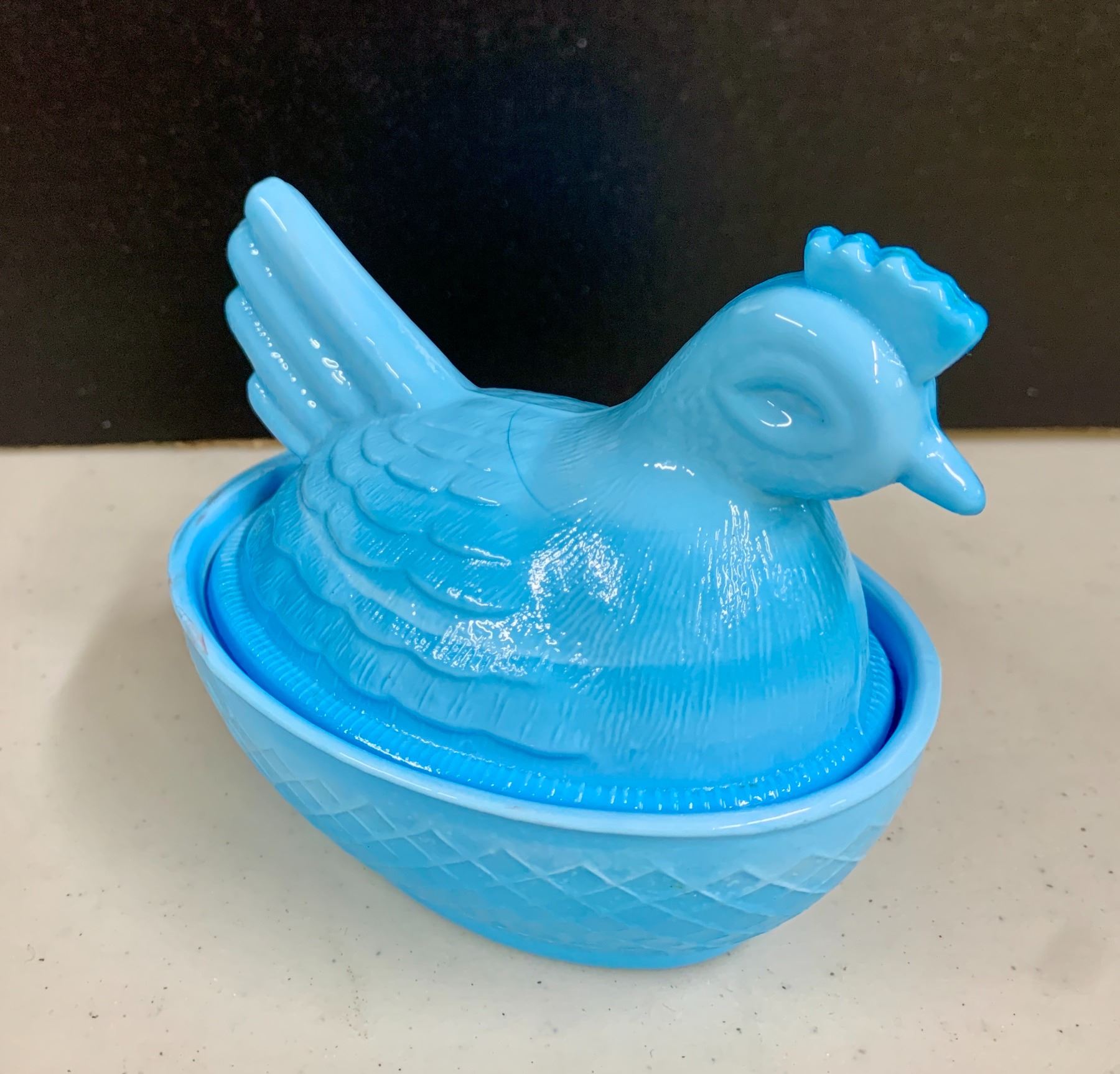HEISEY BLUE SLAG VINTAGE HEN ON NEST
