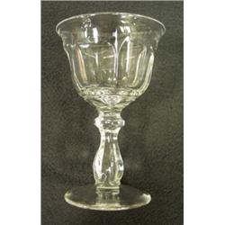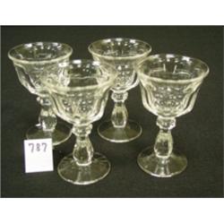 Four Heisey "Colonial" sherry glasses. Marked under bowls. Approx 5" tall. Round base is 2.5" wide. Condition: Excellent