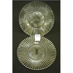 Two Heisey "Ridgeleigh" plates. Clear. 8" wide. Condition: Some surface scratches.