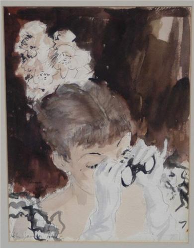 HELEN JAMESON HALL 13"x9" watercolor at the opera <BR>condition: excellent