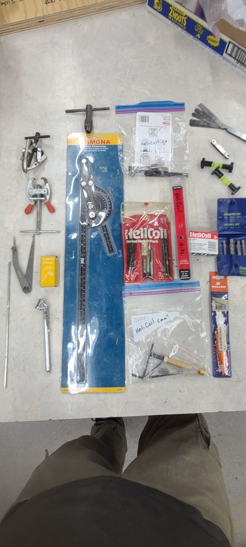 HELICOILS AND METAL PROTRACTOR AND MORE PLEASE SEE IMAGES