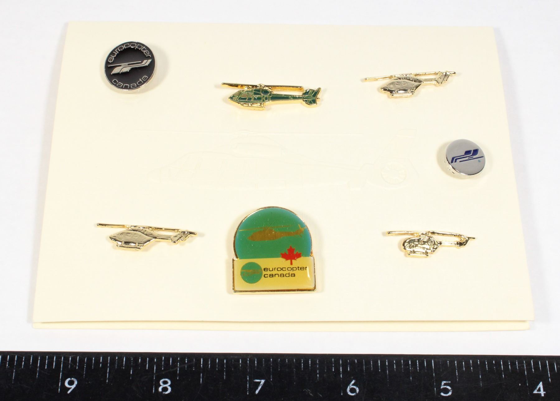 CARD. Several helicopter pins mounted on a card with a raised-profile of a helicopter. Beautiful item.
