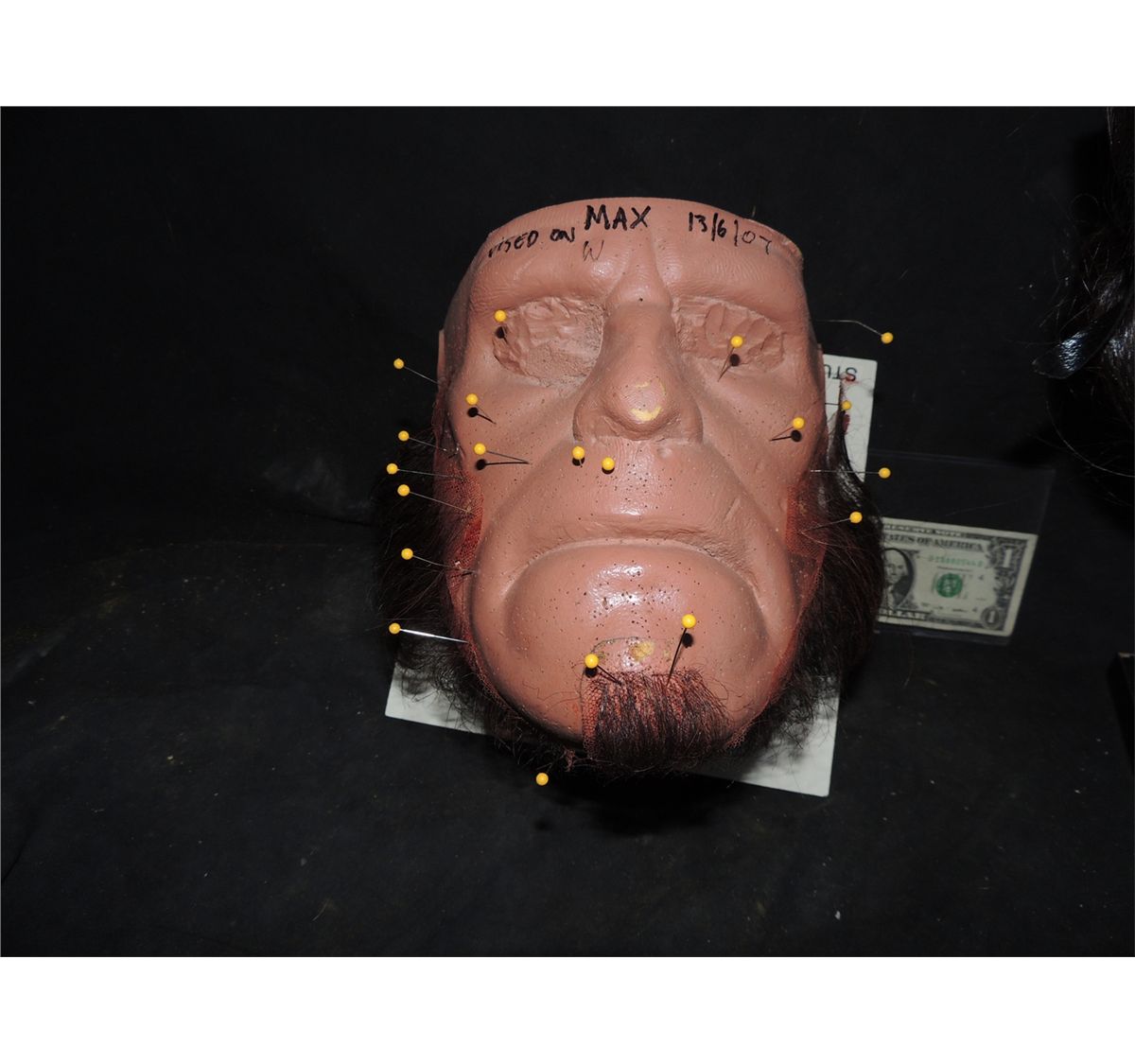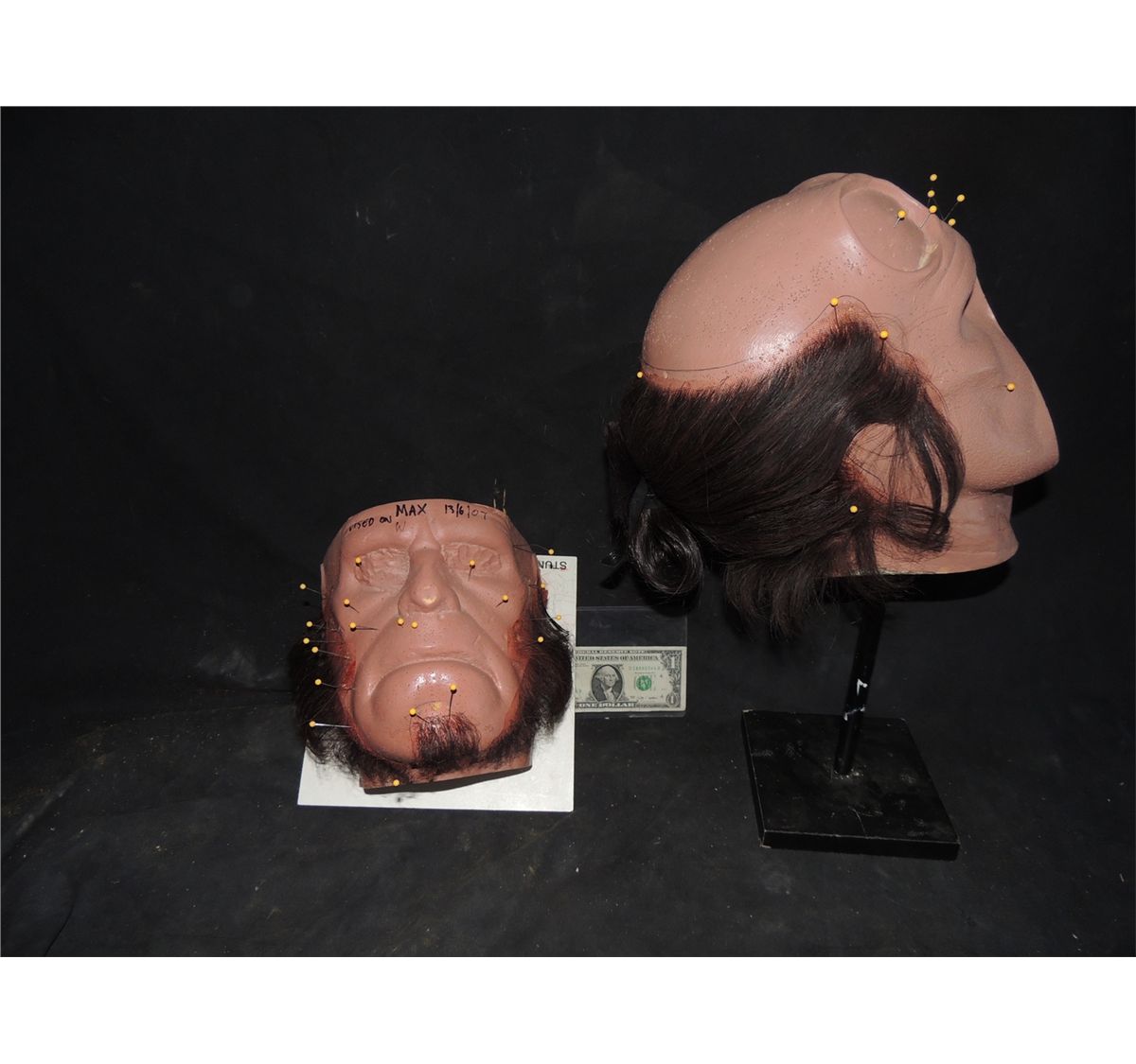 Though they were stored after production on head casting marked as stunts, these are the HERO pieces! Stunts were laid hair on the full masks. These are very expensive hand tied lace matte appliances.