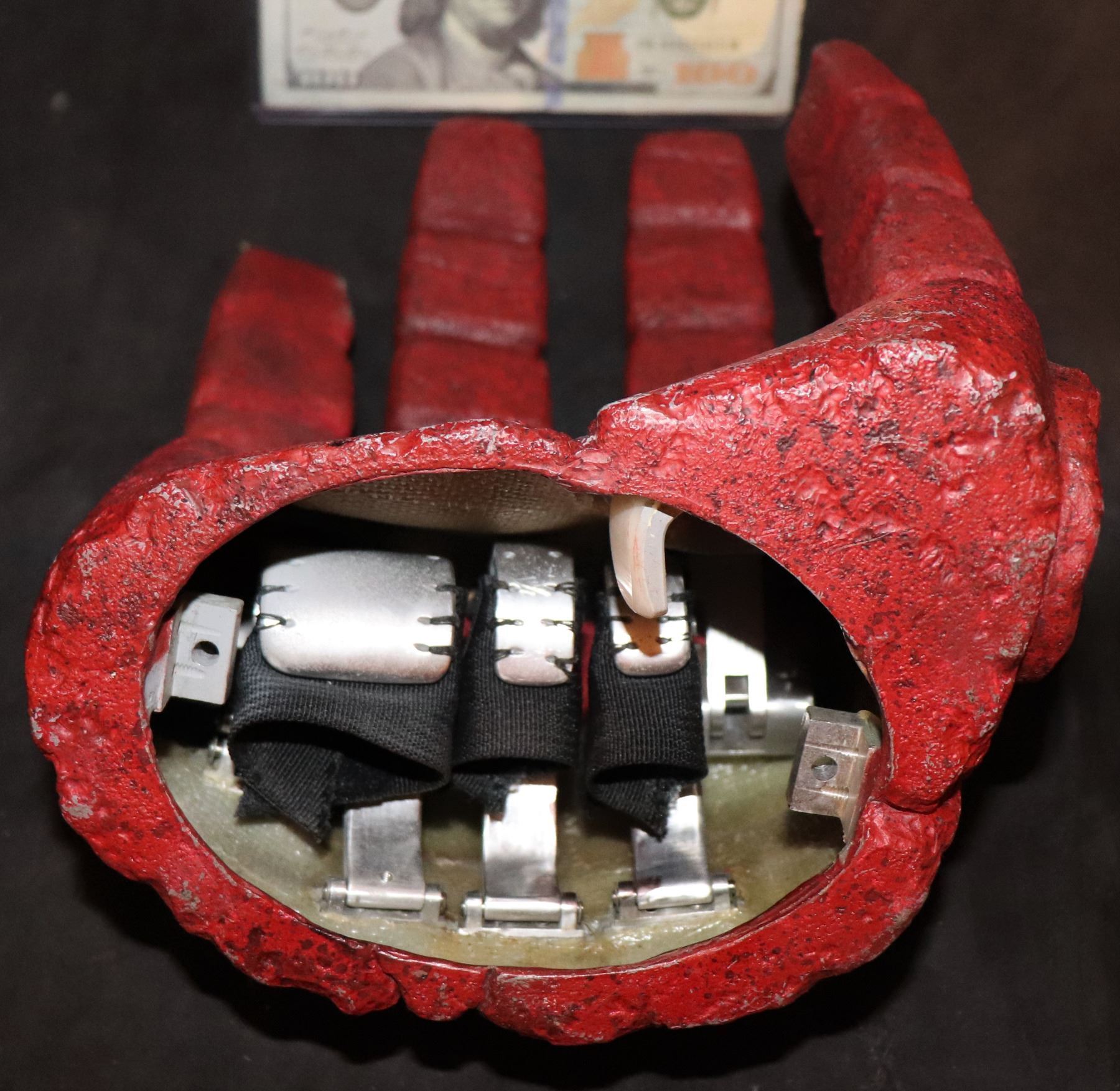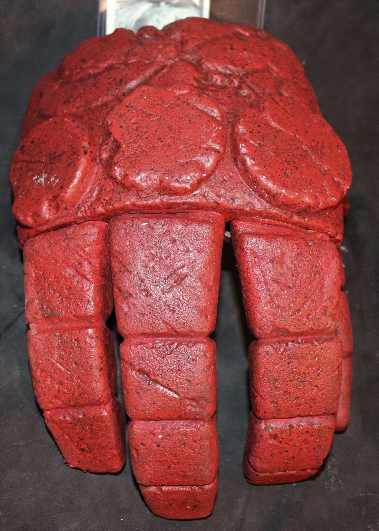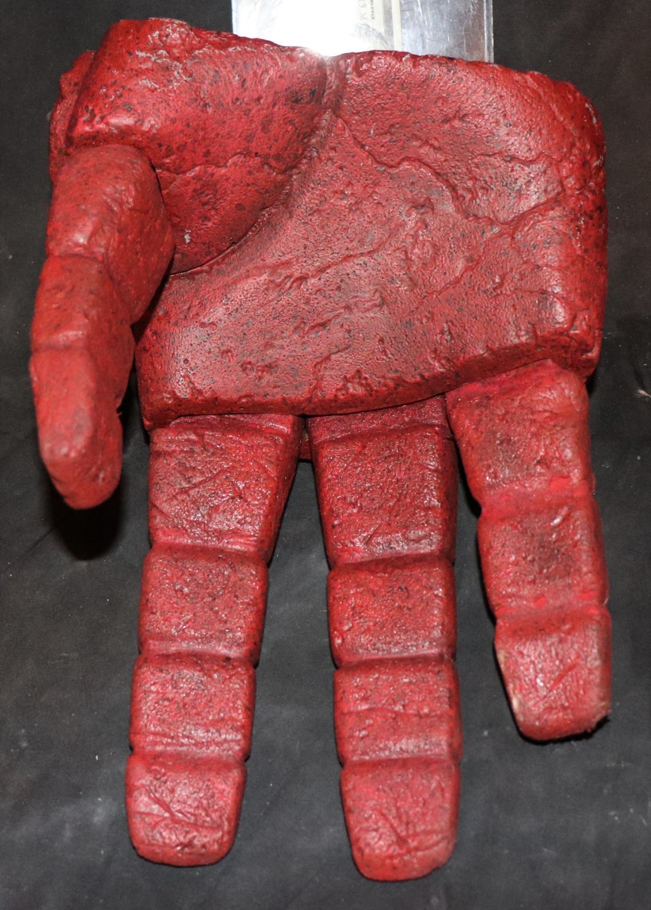 This is the SCREEN MATCHED HERO HAND/FIST OF DOOM PUPPET with all the triggers to operate the fingers intact. HELLBOY is a darker red and this is prominently seen throughout the original HELLBOY film!