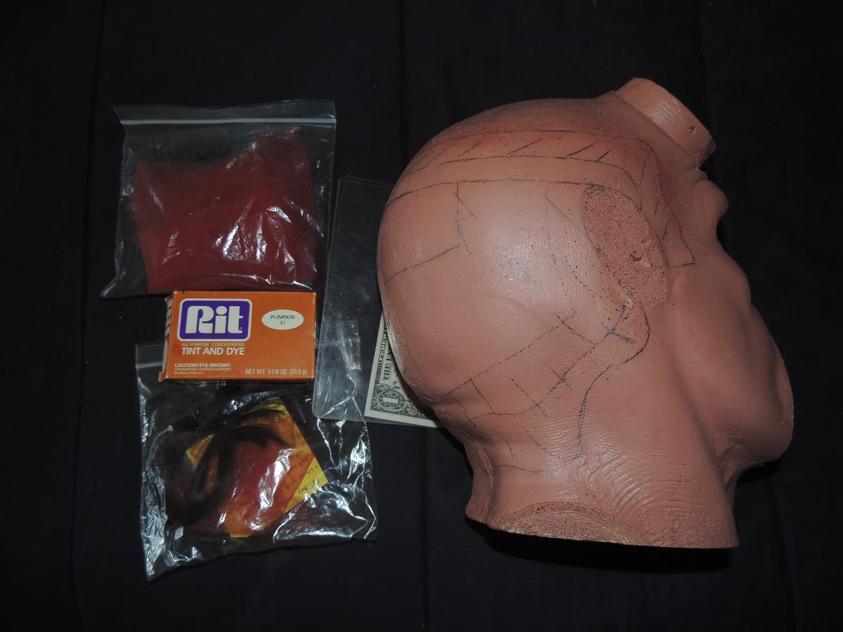 HELLBOY HEAD WITH HAIR PATTERN AND MATERIALS TO MAKE WIGS
