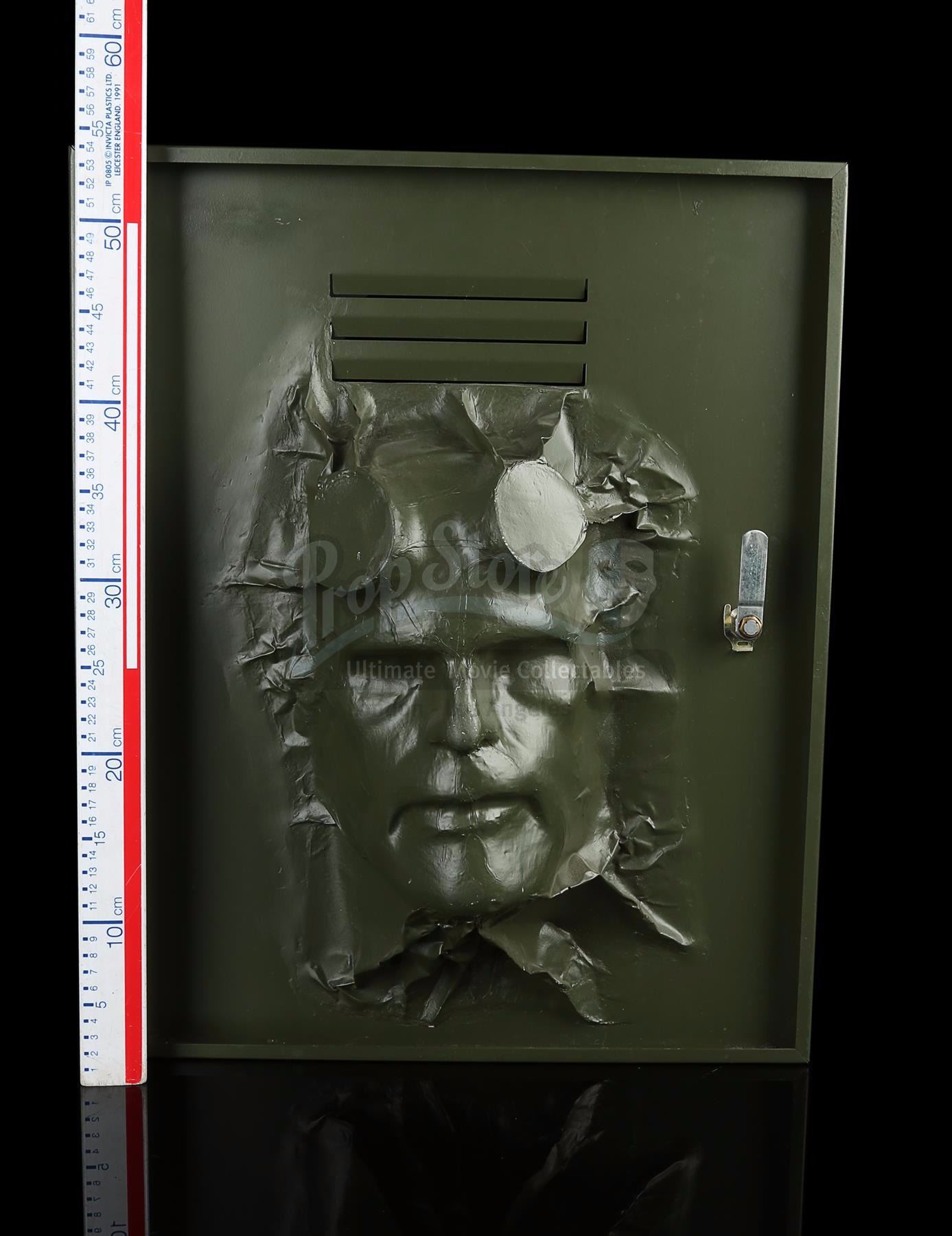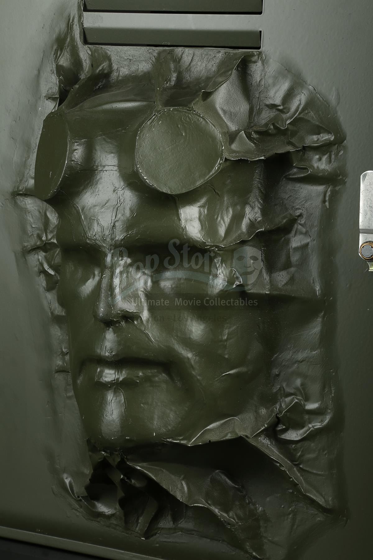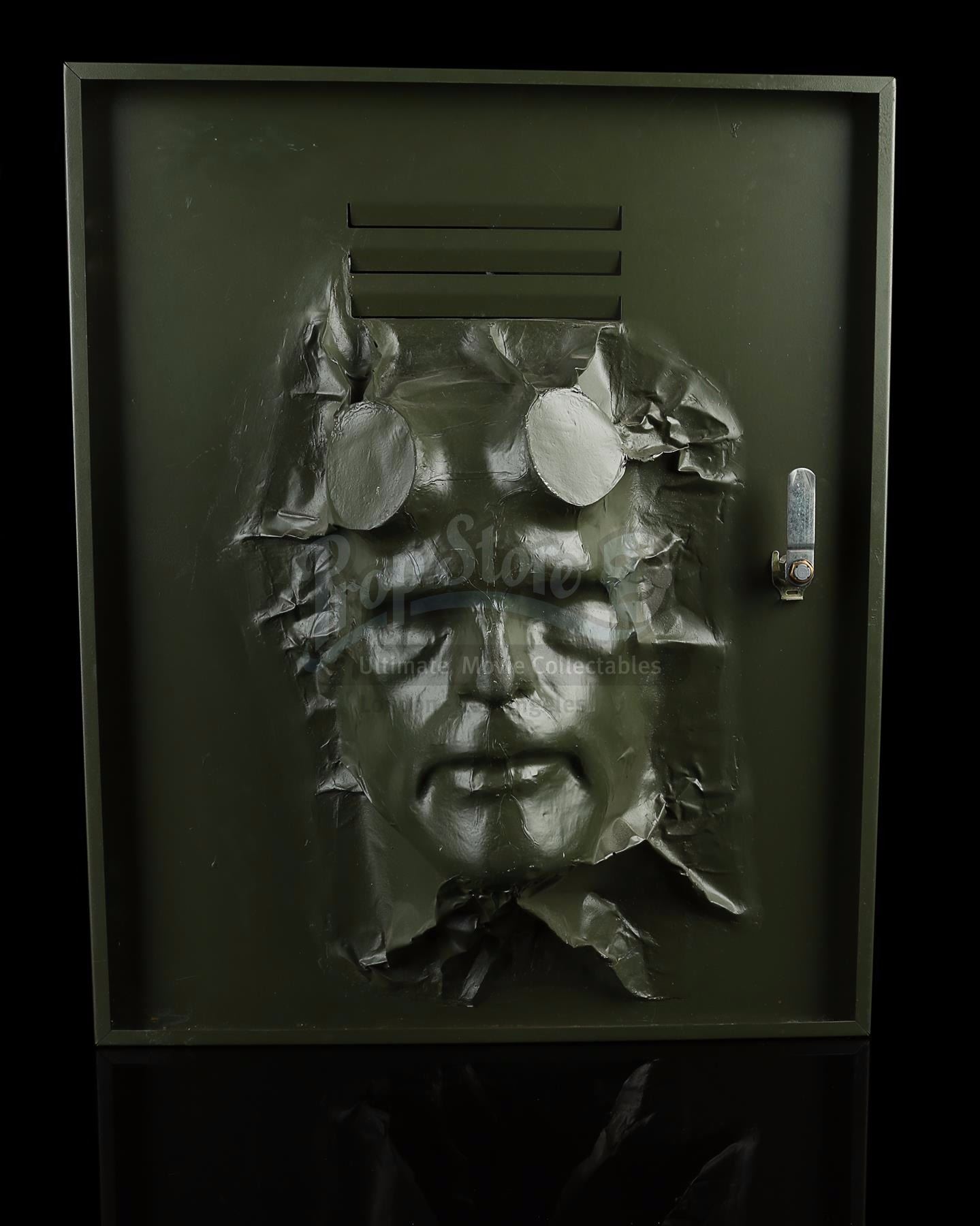 Hellboy's (Ron Perlman) dented locker door from Guillermo del Toro's fantasy action-adventure Hellboy II: The Golden Army. Hellboy had his face planted into the shower-room locker door during his sparring session with the gaseous Johann Kraus (voiced by Seth Macfarlane), leaving his recognisable face print in the metal.