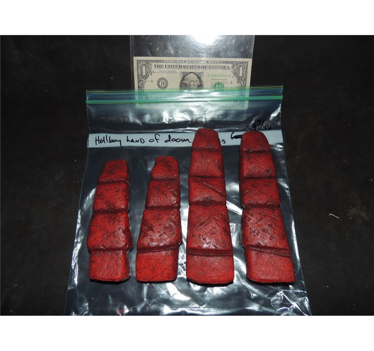 These are a complete set of all 4 right Hand or Fist of Doom fingers and thumb from HELLBOY. Though unused these are painted and ready to go.