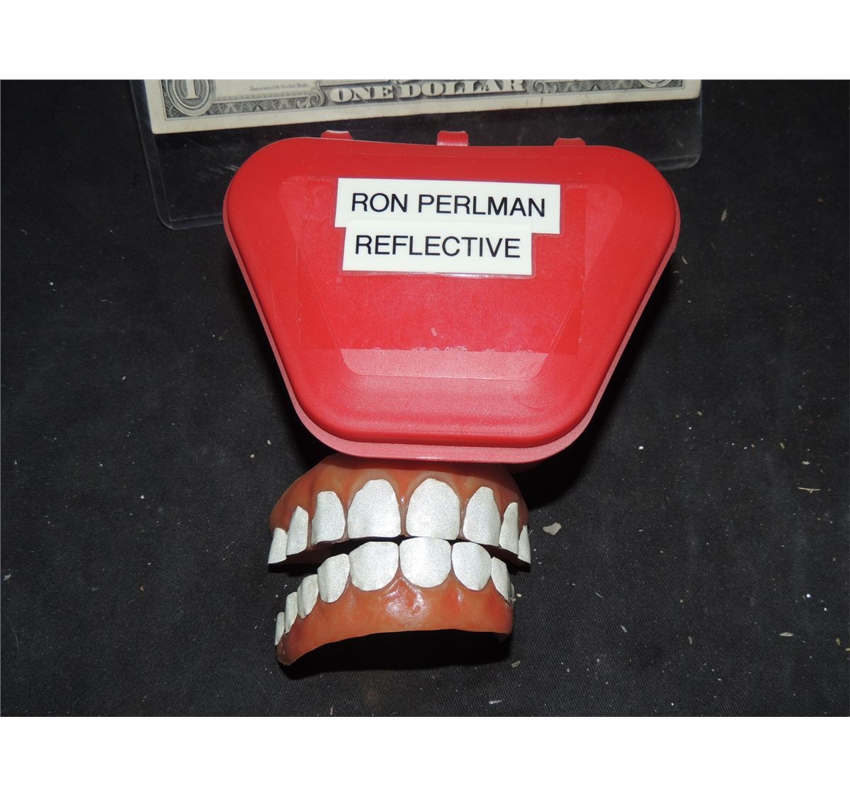 These are HELLBOY actor RON PERLMAN'S Hero Reflective teeth used in scenes where his teeth looked whiter. They are painted with scotch brite. If you can find that scene, these can be screen matched!