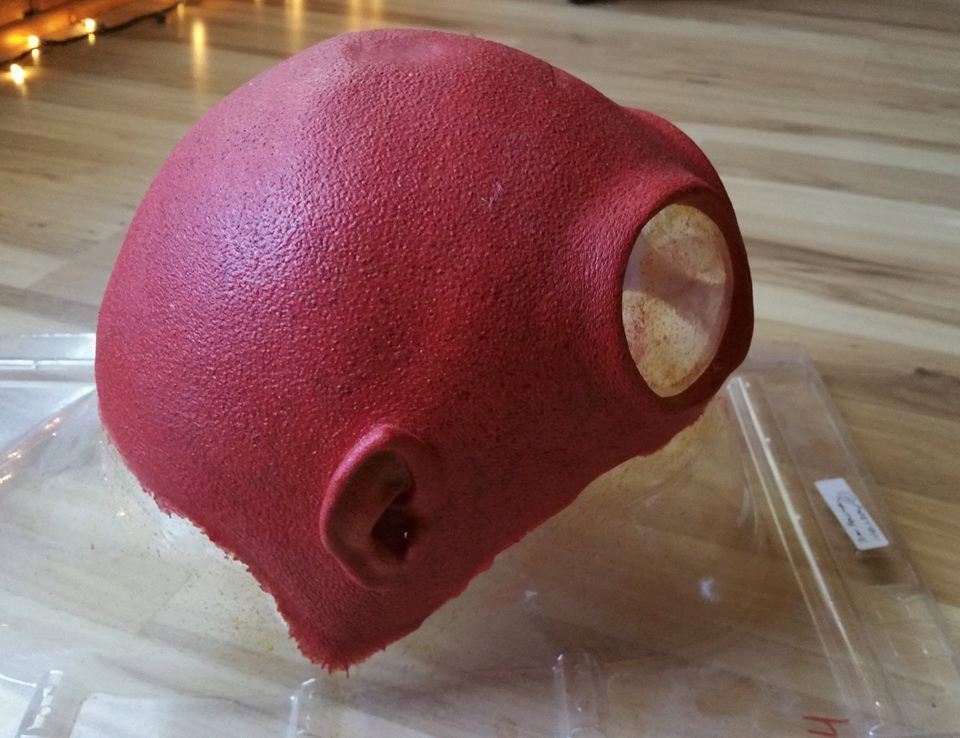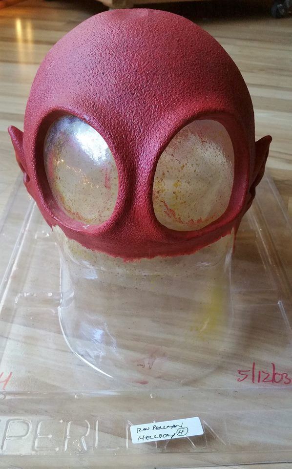 Hellboy 2004 . Ron Perlman's head piece and ears. Comes on vacu-form life cast. On the side embossed is "Perlman". Production tag stating Perlman and also written in marker the demold date. This is in very good shape and foam is very soft still.