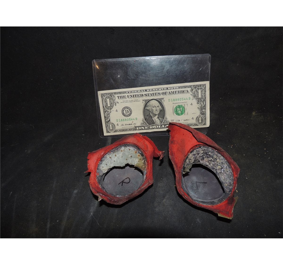 This is a Screen Used matched pair of HERO resin ground down horns from HELLBOY. These still have some head skin attached too.