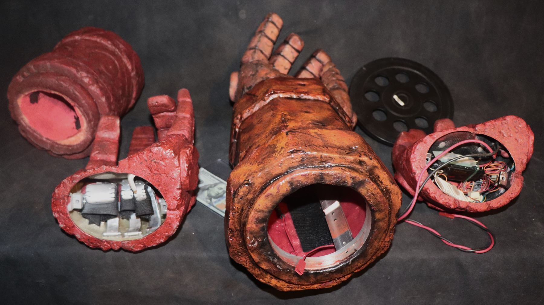 This is all 3 of the SCREEN MATCHED HERO HAND/FIST OF DOOM PUPPETS with all the triggers and animatronics to operate the fingers intact. I HAVE CONFIRMED "From The Man Himself" that both were Prominently Used and Seen Throughout BOTH FILMS! The original HELLBOY, and the sequel HELLBOY II: THE GOLDEN ARMY! Only one cuff was made for use on both but I include it here because the paint matches more closely for display. Also includes the Animatrononic hero from the HELLBOY remake!