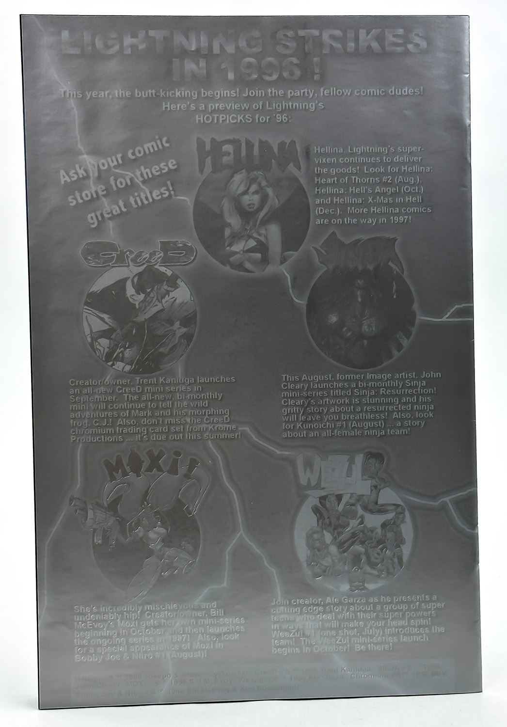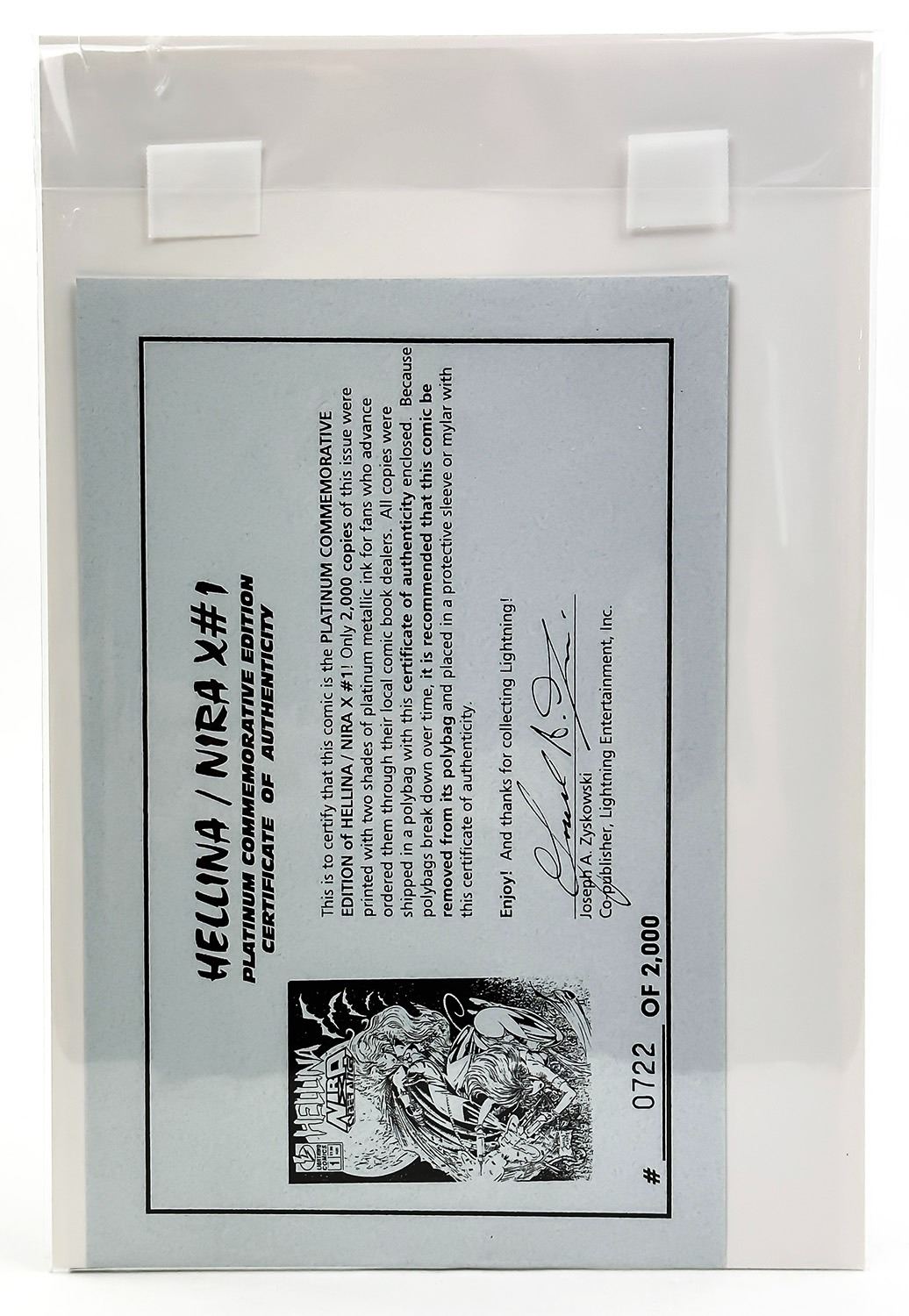 #9106 - HELLINA NIRA CYBER ANGEL X. PLATINUM EDITION COVER BY JOHN CLEARY. LIMITED EDITION OF 2000 COPIES. LIGHTENING COMICS, COMIC BOOK***ITEM(S) LOCATED IN LETHBRIDGE ALBERTA. FREE TRANSPORT TO EDMONTON OFFICE AVAILABLE FOR THIS AUCTION. WORLDWIDE SHIPPING IS AVAILABLE FOR ALL ITEMS