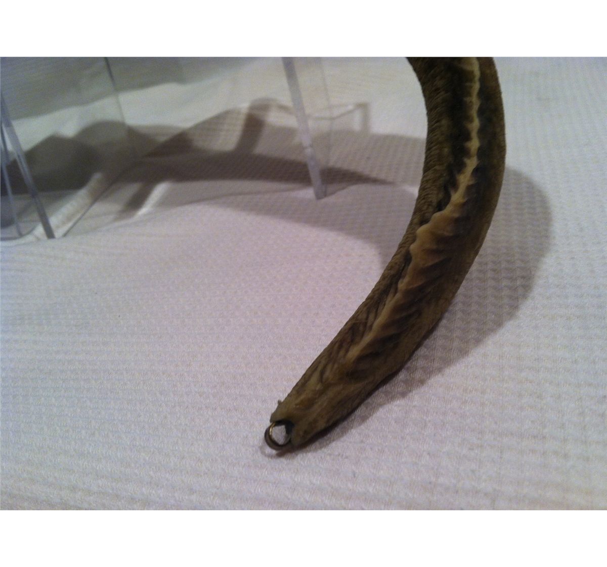 There is a metal circle hook connected to the front of the eel and also the same on the tail for making the eel move on screen. It measures around 3ft long and is made of solid heavy rubber. Amazing detail as seen in the photos.