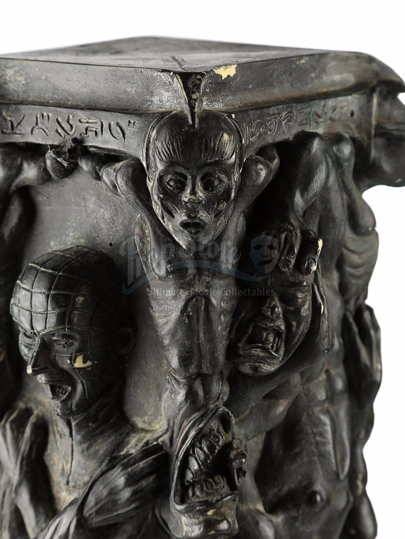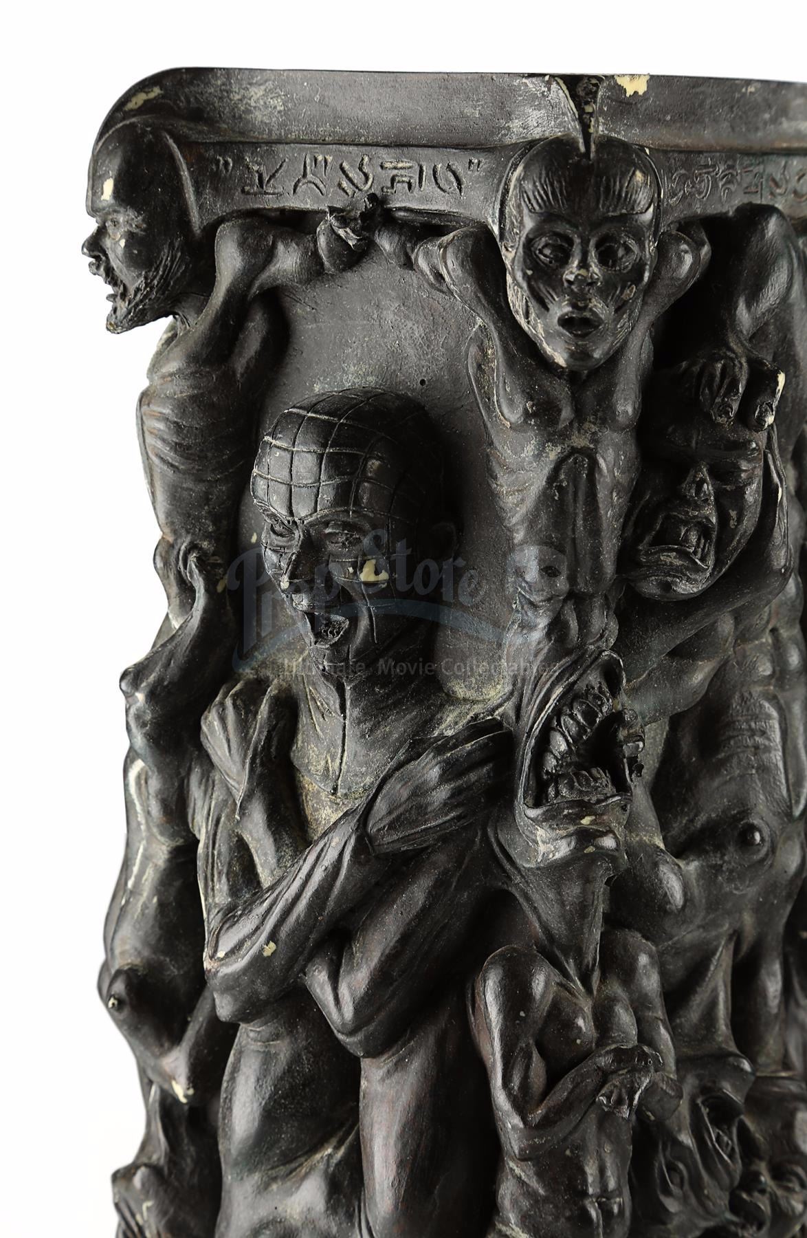 A maquette of the Pillar of Souls from Anthony Hickox's horror sequel Hellraiser III: Hell on Earth. The Cenobite Pinhead (Doug Bradley) returns to Earth through the Pillar of Souls, using club owner J.P. Monroe (Kevin Bernhardt) to bring him more victims.