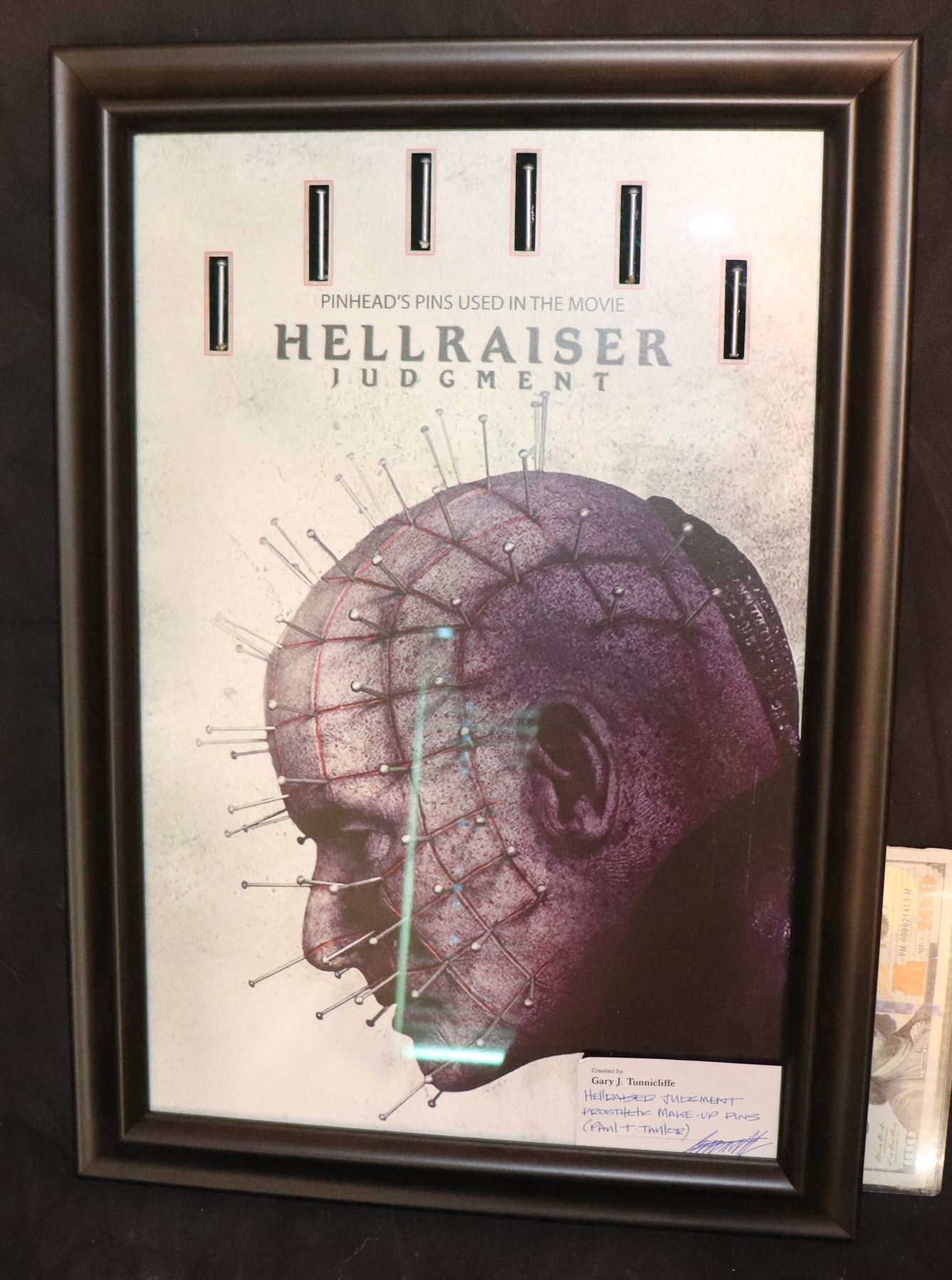 HELLRAISER JUDGEMENT PIN HEAD LOT OF 6 PINS NICELY FRAMED!