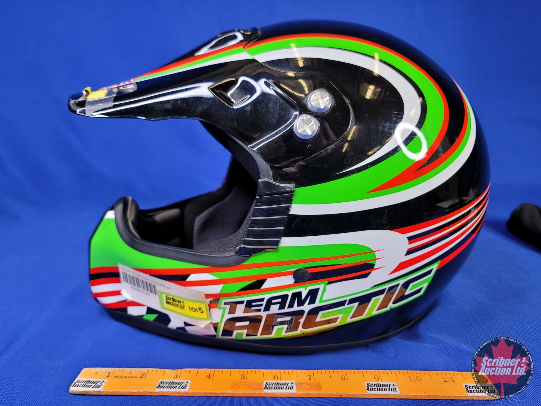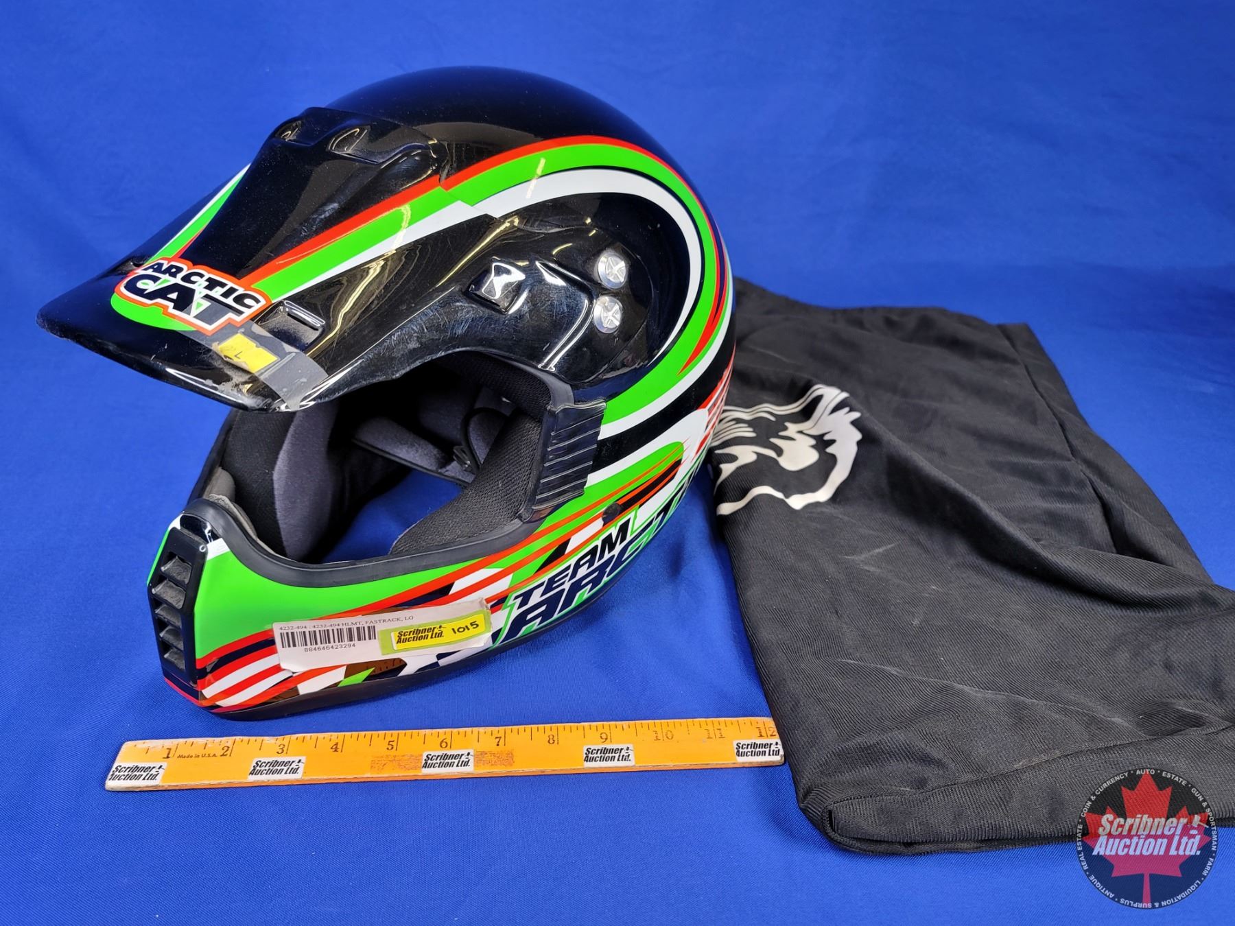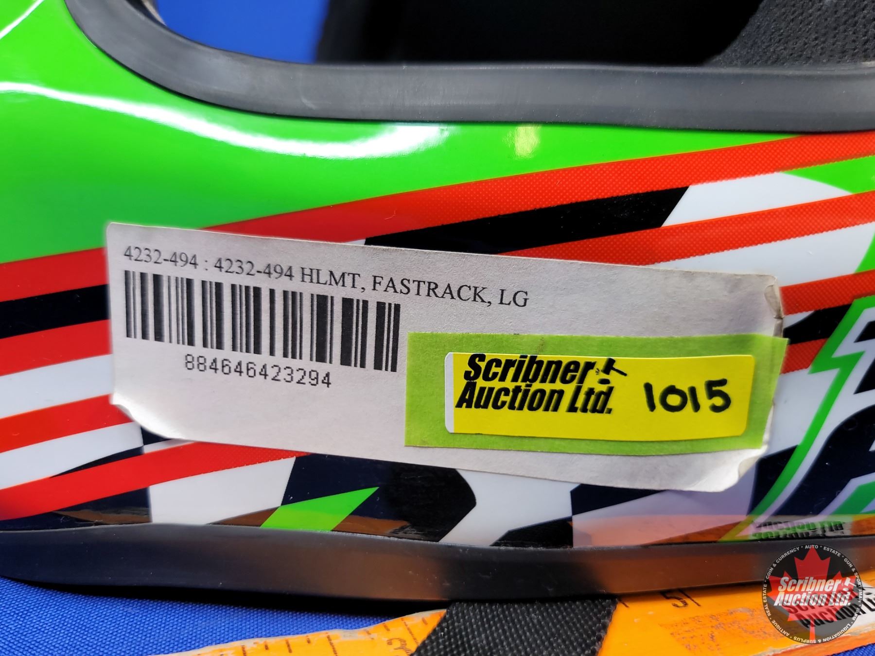 HELMET : Arctic Cat Fasttrack DOT (Green/White/Red) Size : Large (SEE PICS)
