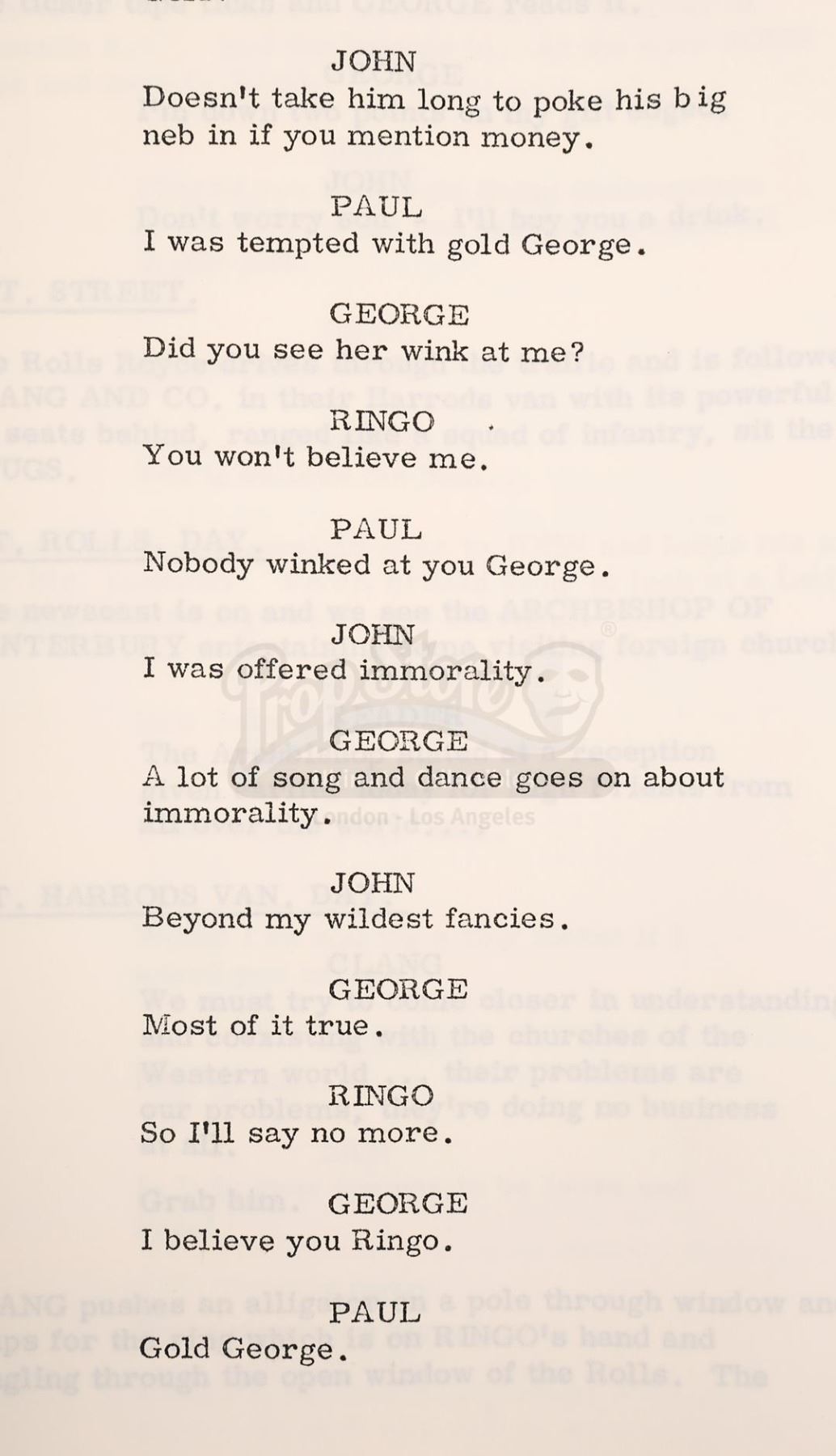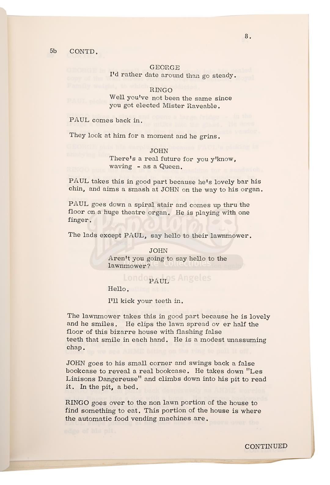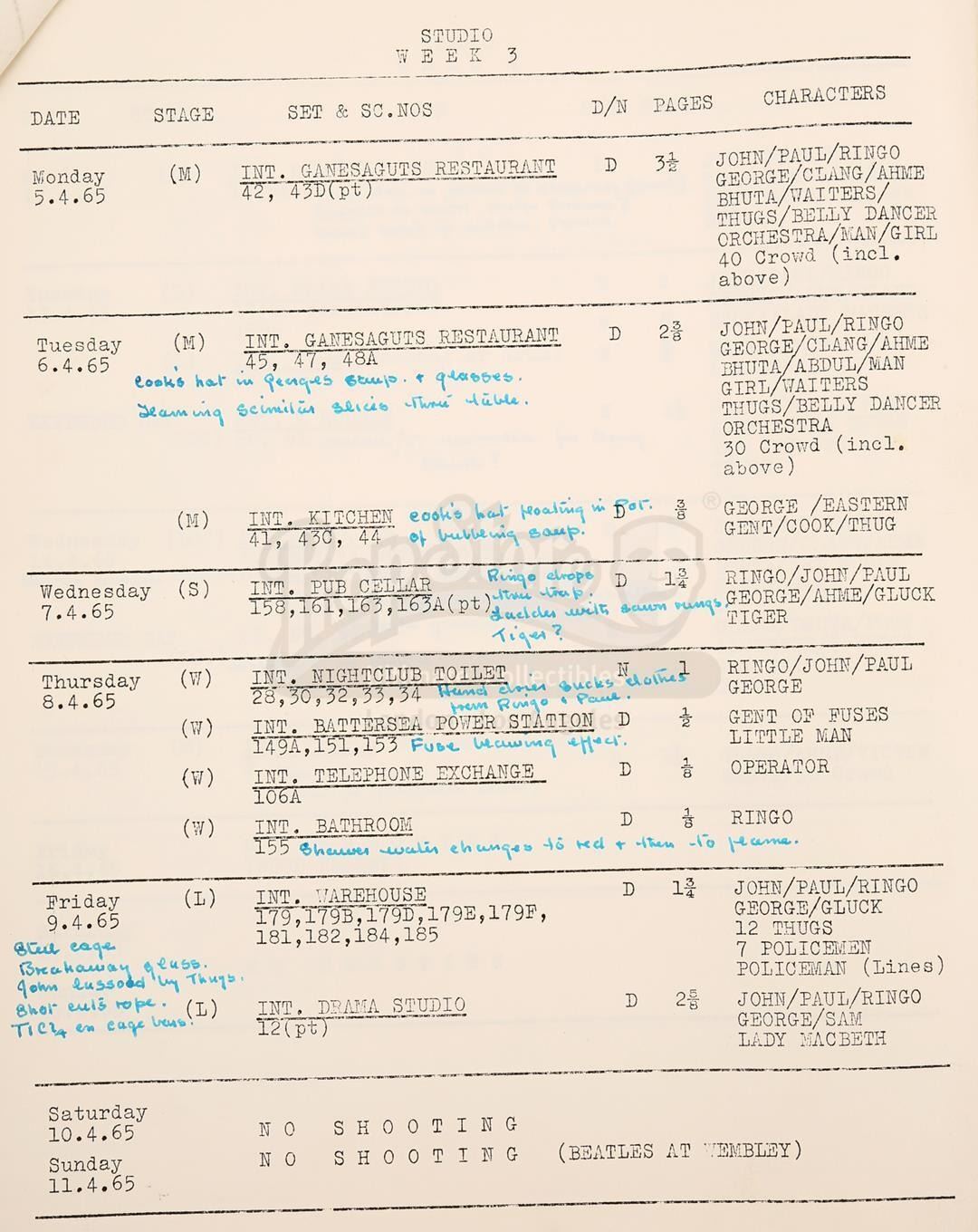 A script and shooting schedule from the production of The Beatles' second feature film Help!, directed by Richard Lester.