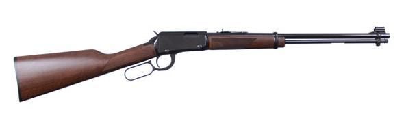 Manufacturer:Henry Repeating Arms Model #:Henry Lever Action Type:Rifle: Lever Action Finish:Blue Stock:Walnut Straight Checkered Sights:Front: Hooded Rear: Adjustable Barrel Length:19.25" Overall Length:37.5" Weight:5.5 lbs Caliber:22M Capacity:11+1 Action:Lever Action Receiver:Blue, Grooved Features:Barrel Band Tubular Magazine