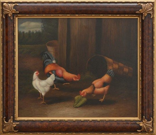 "HEN PARTY" - ORIGINAL HAND PAINTED OIL ON CANVAS - PROFFESSIONALLY FRAMED - IMAGE 20X24" - FRAMED 27X31"